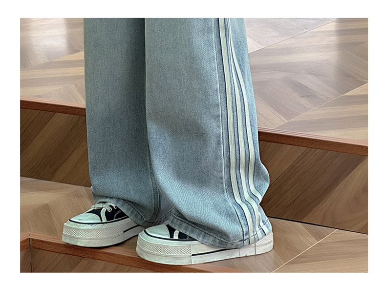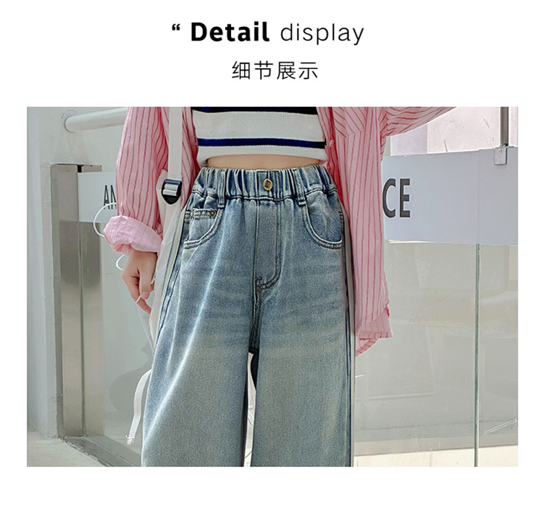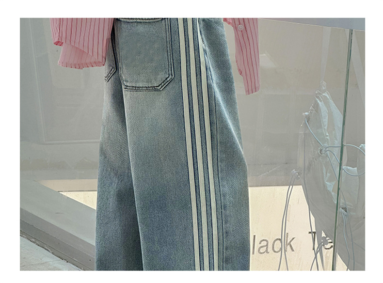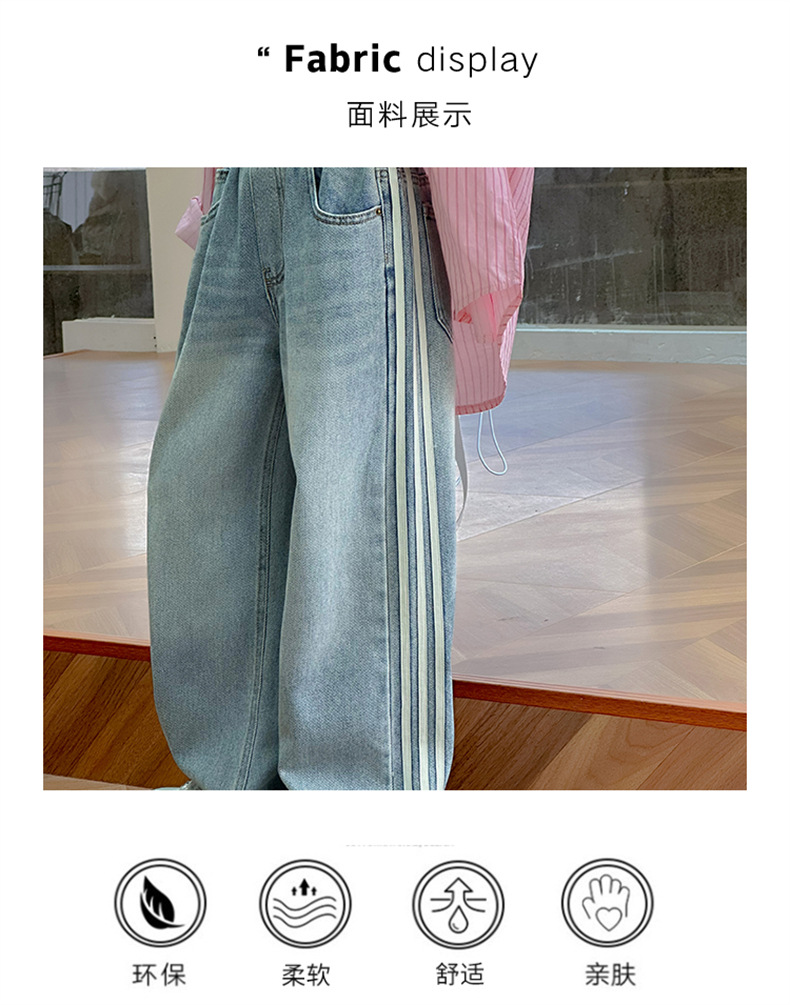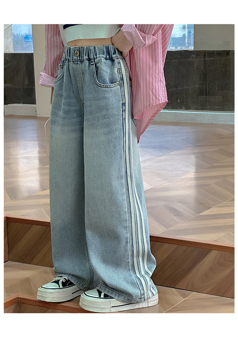 여아 웨빙 스트립 청바지 2025 가을 신작 아동 스타일 캐주얼 와이드 팬츠 긴 바지 아동 바지스토어 가기