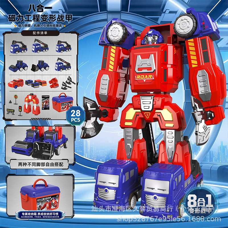 국경 간 자기 엔지니어링 차량 변형 로봇 모델 장난감 변형 자기 자동차 킹콩 소년 어린이 장난감스토어 가기