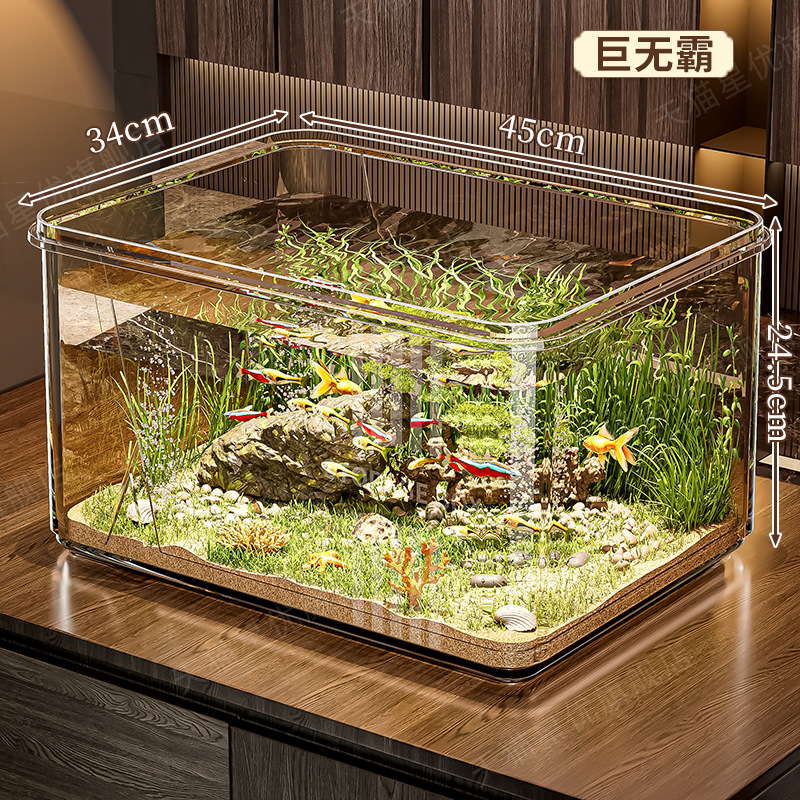 둥근 수조 플라스틱 일체형 모조 유리, 낙하 방지 및 파손 방지, 거실용 소형 데스크탑, 세련되고 간단한 생태 수조스토어 가기