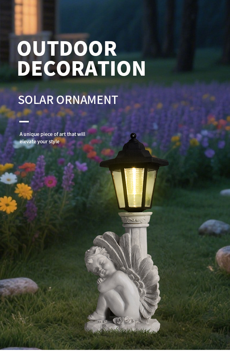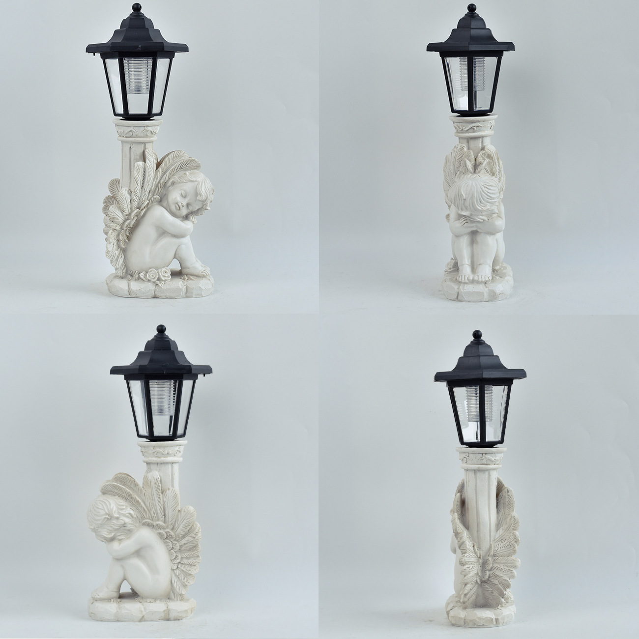 국경 간 창조적 인 골동품 로마 기둥 무릎 천사 태양 야외 조명 유럽 스타일 수지 안뜰 동상 장식 조명