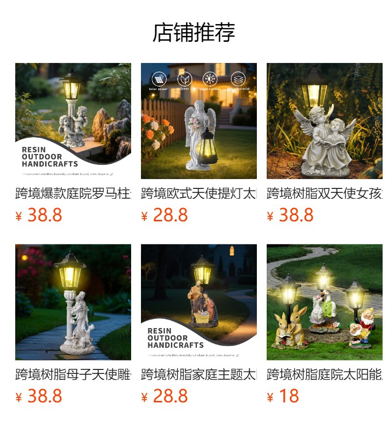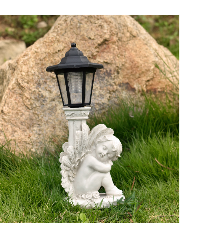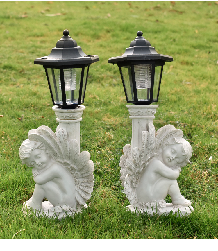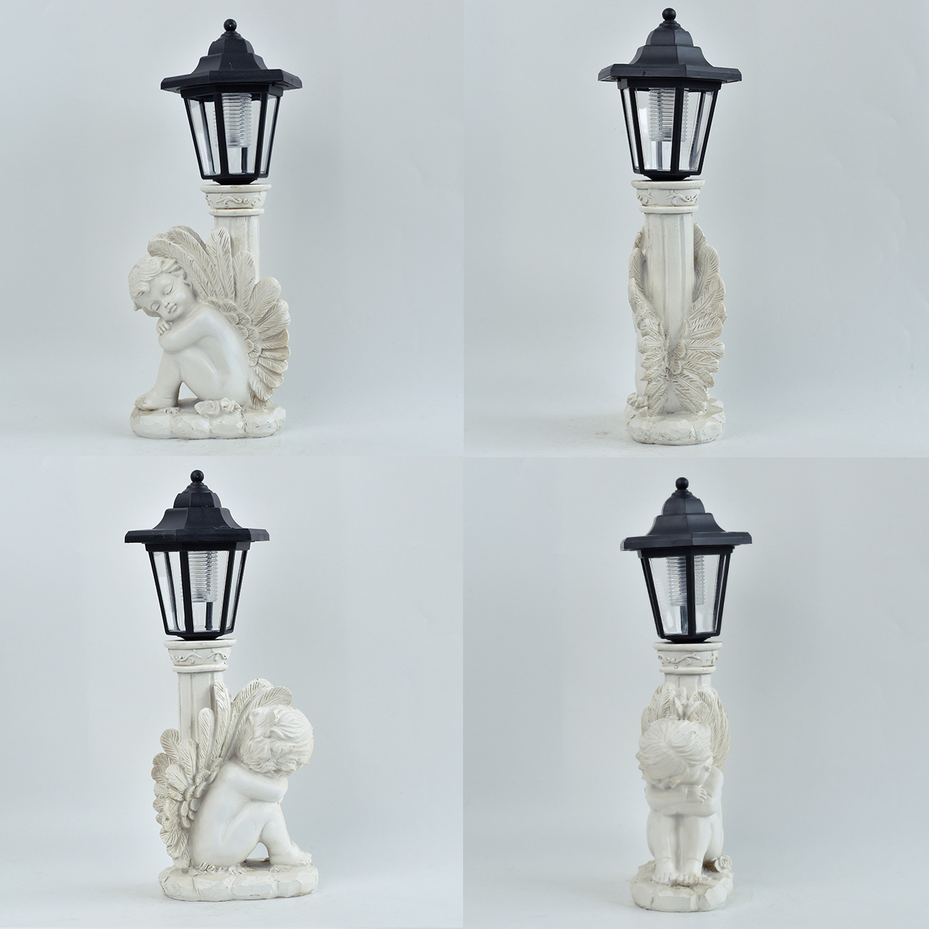 국경 간 창조적 인 골동품 로마 기둥 무릎 천사 태양 야외 조명 유럽 스타일 수지 안뜰 동상 장식 조명스토어 가기