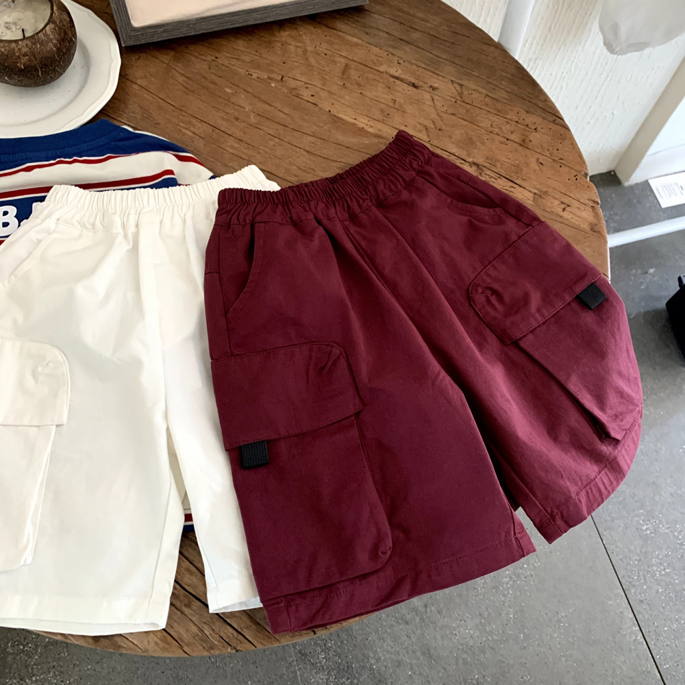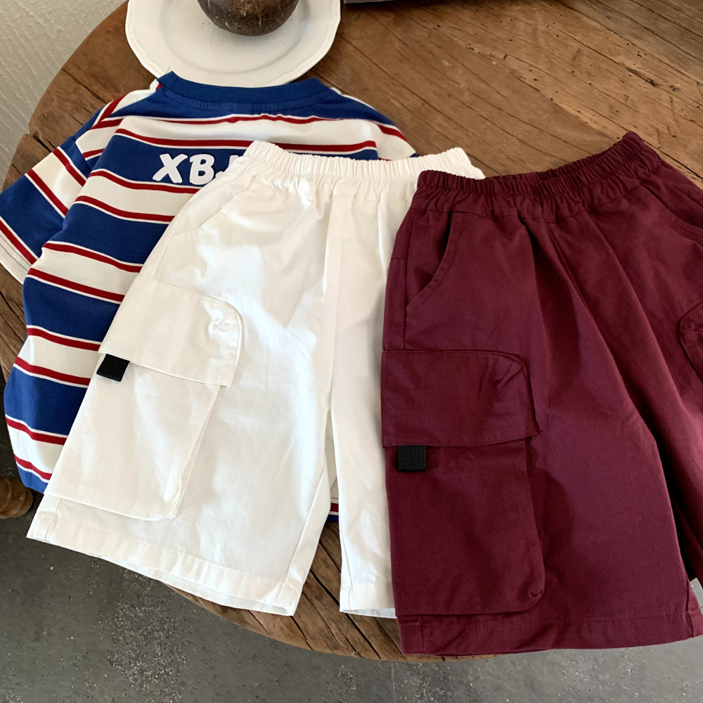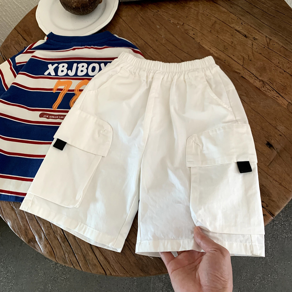 2025년 신상 여름 아동복 홍콩 스타일 소년 포켓 작업복 중형 바지 중소형 아동 트렌디 베이비 캐주얼 반바지