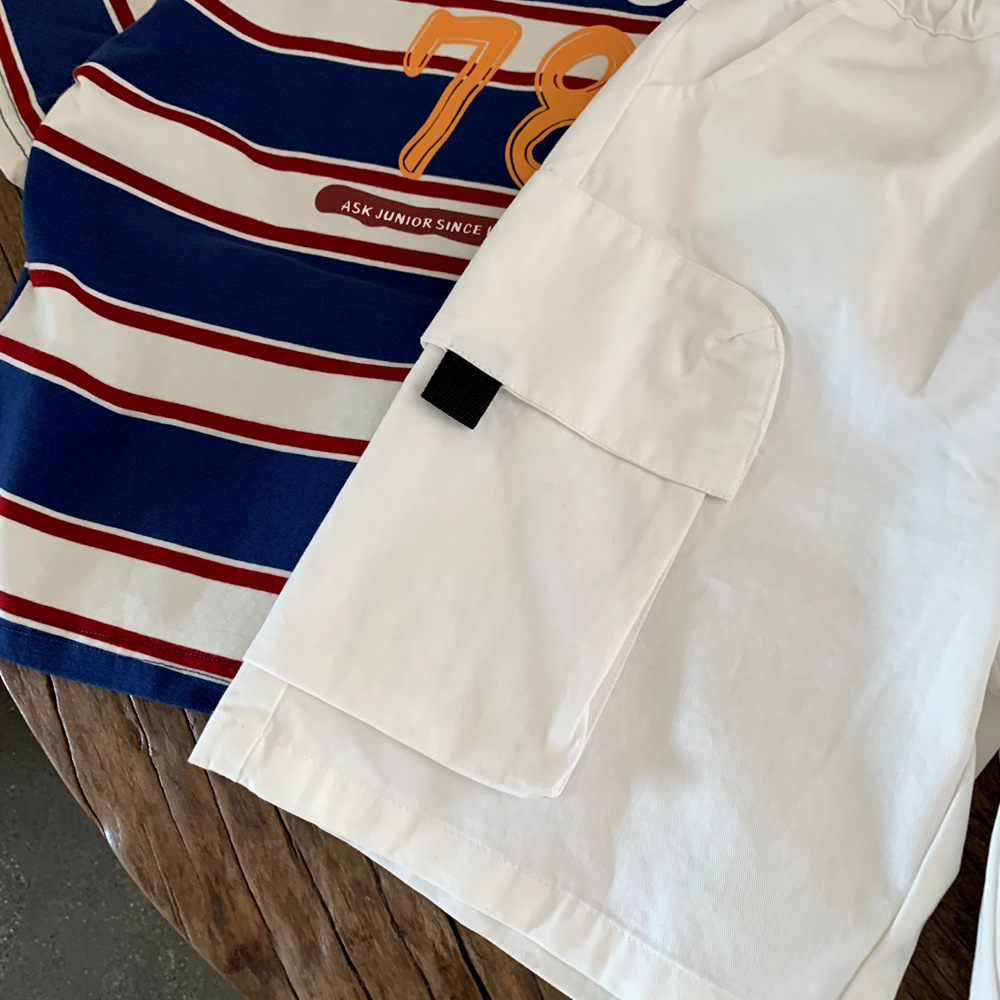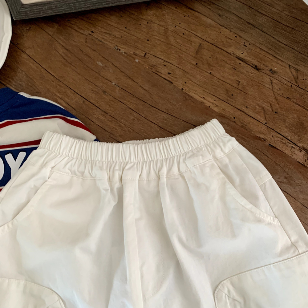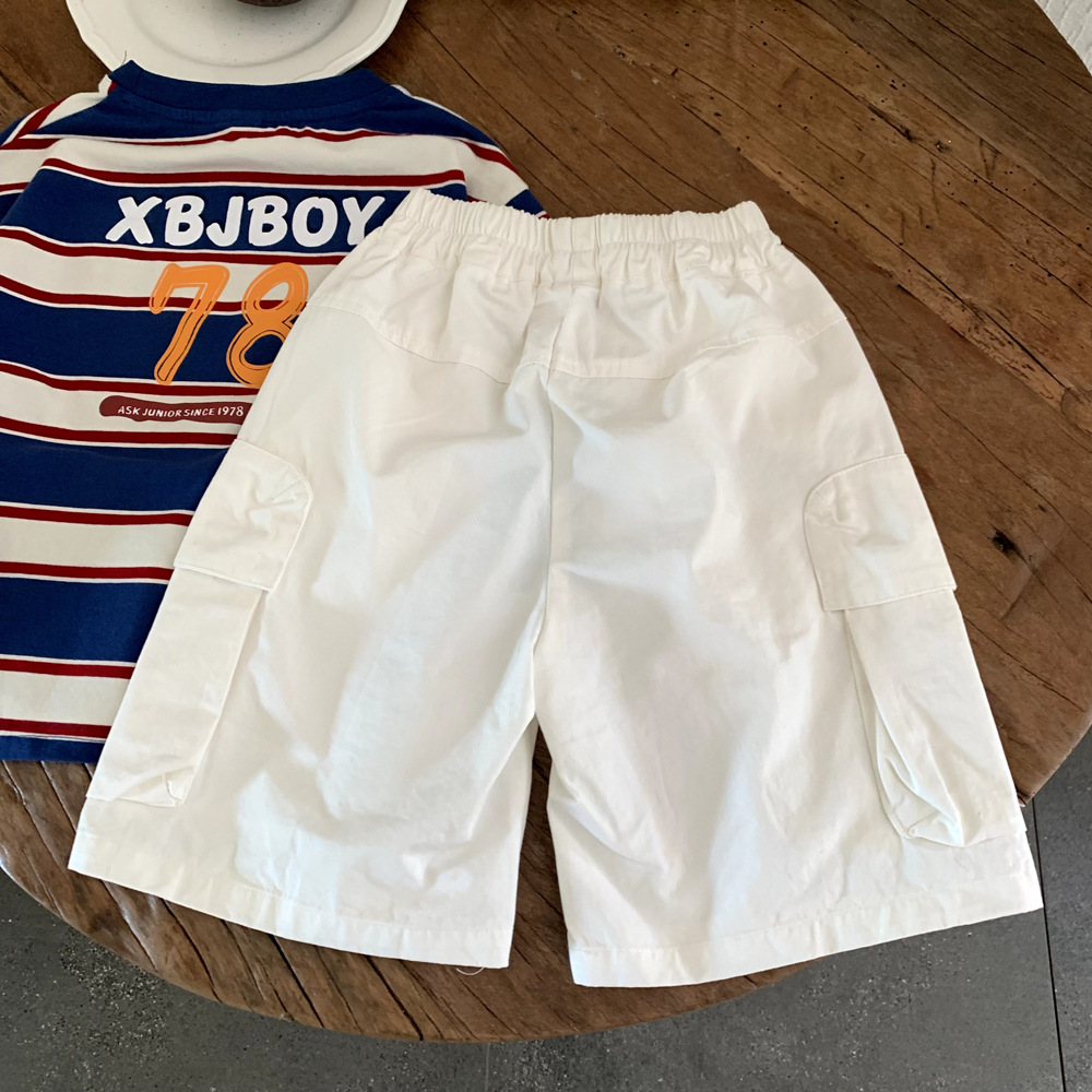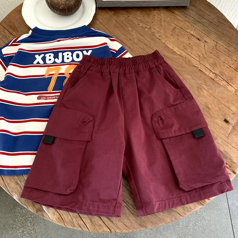 2025년 신상 여름 아동복 홍콩 스타일 소년 포켓 작업복 중형 바지 중소형 아동 트렌디 베이비 캐주얼 반바지