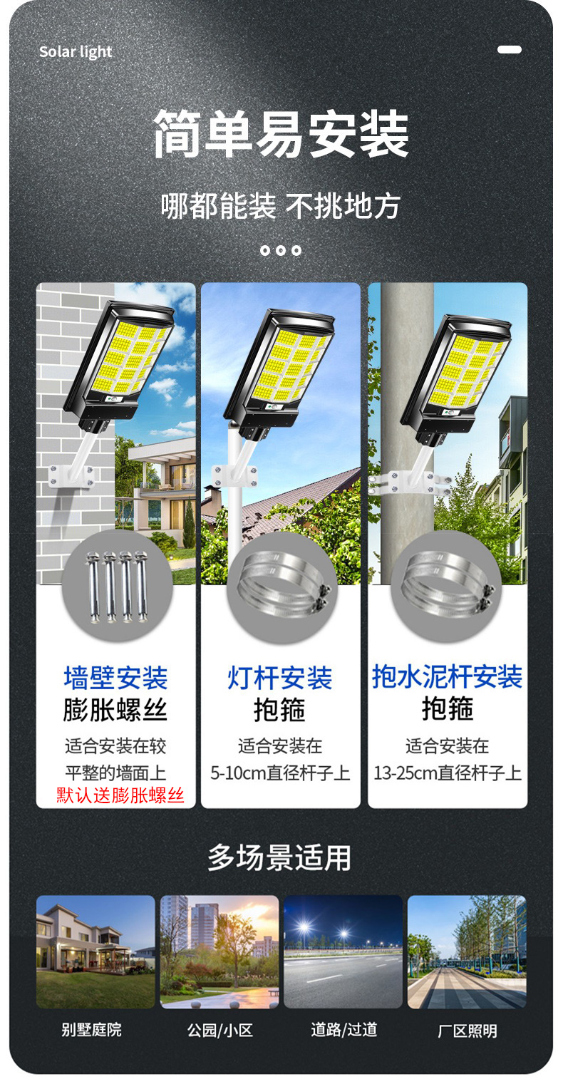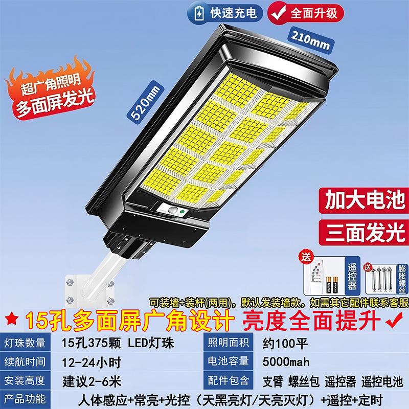 곡선 스크린 태양 광 가로등 15 홀 야외 조명 정원 조명 홈 통합 인체 유도 벽 램프 국경 간