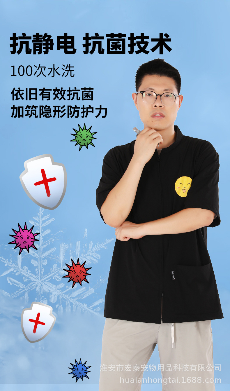 국경 간 애완 동물 미용 탄성 속건 작업복 고급 미용사 유니폼 항균 정전기 방지 방수 손 씻기 옷스토어 가기
