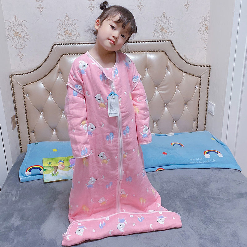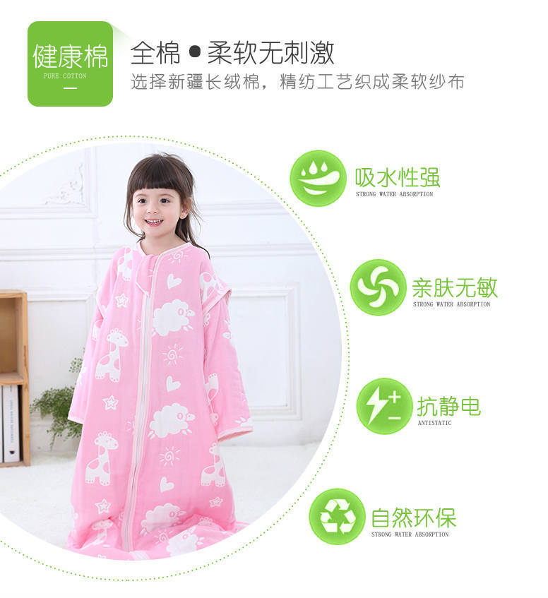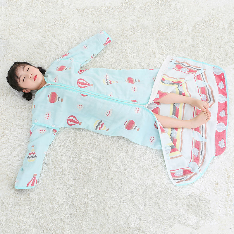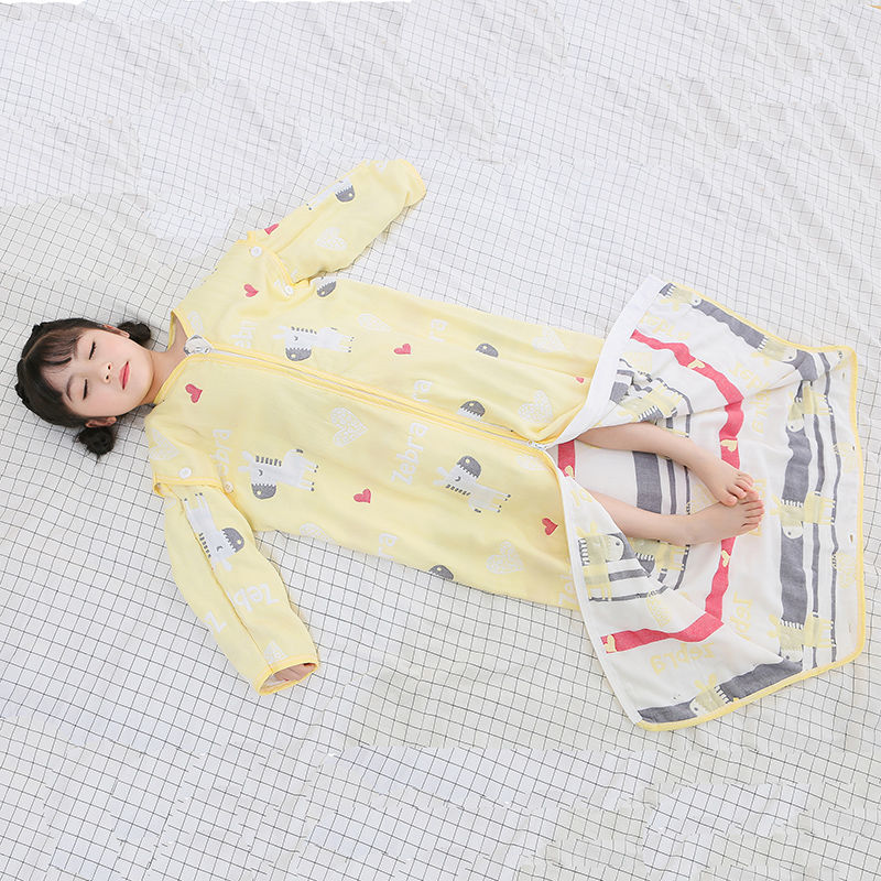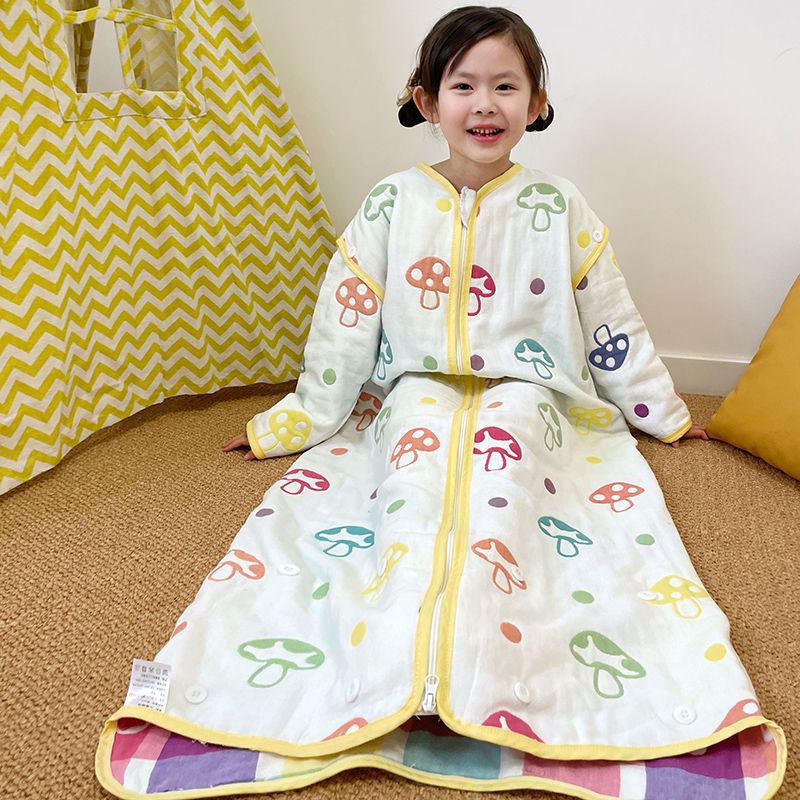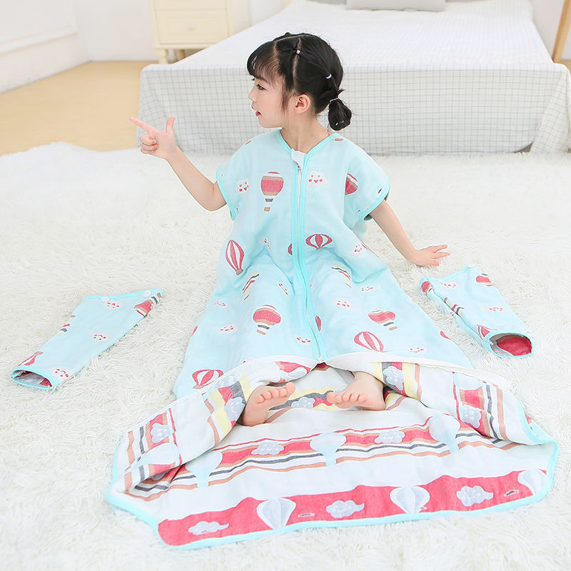 6겹 거즈 아기 아동 침낭 봄 여름 봄 가을 얇은 중대형 어린이 안티 킥 이불 6~15세