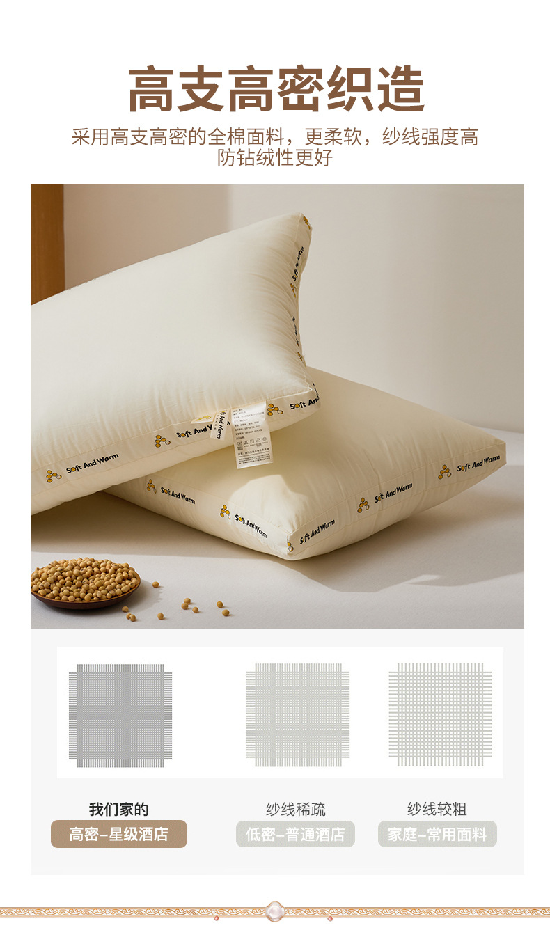 새로운 면 60 카운트 콩 단백질 섬유 베개 코어 편안한 높고 낮은 더블 베개 호텔 품질 침구스토어 가기