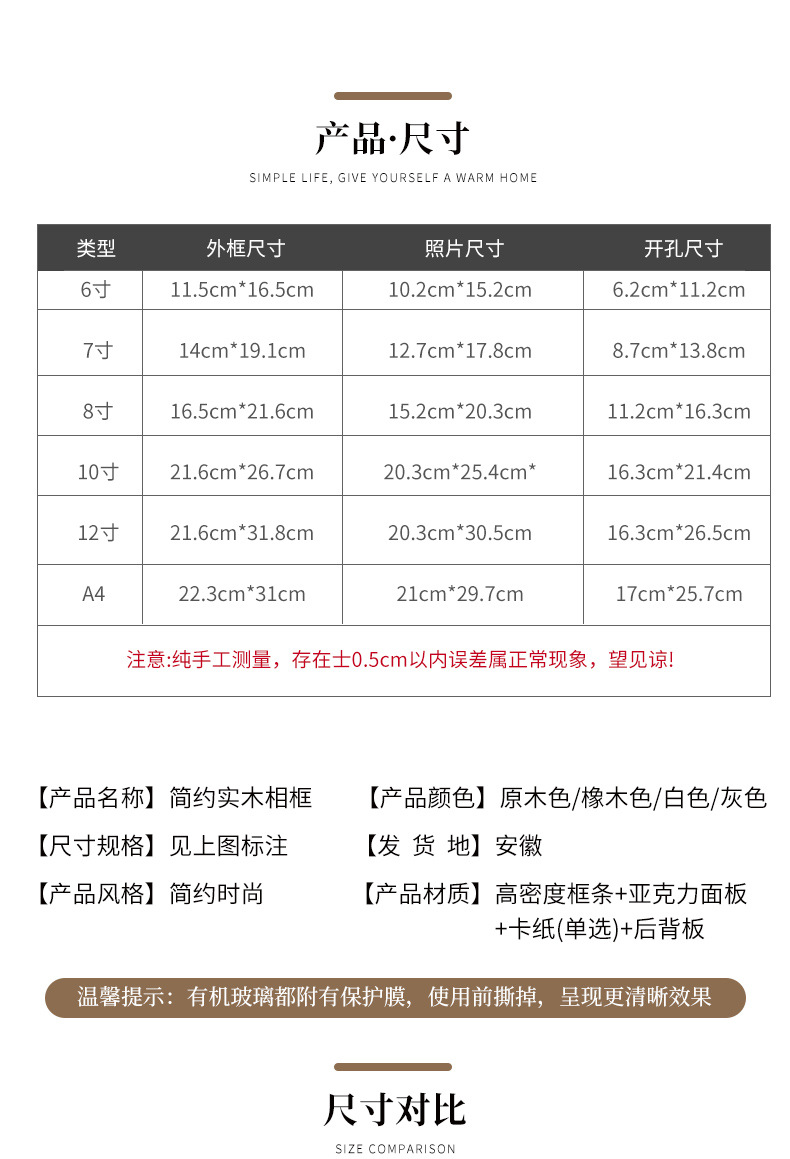 현대적인 심플한 흰색 느릅나무 평면 나뭇결 6 7 8inch 사진 프레임 테이블 그림 프레임스토어 가기