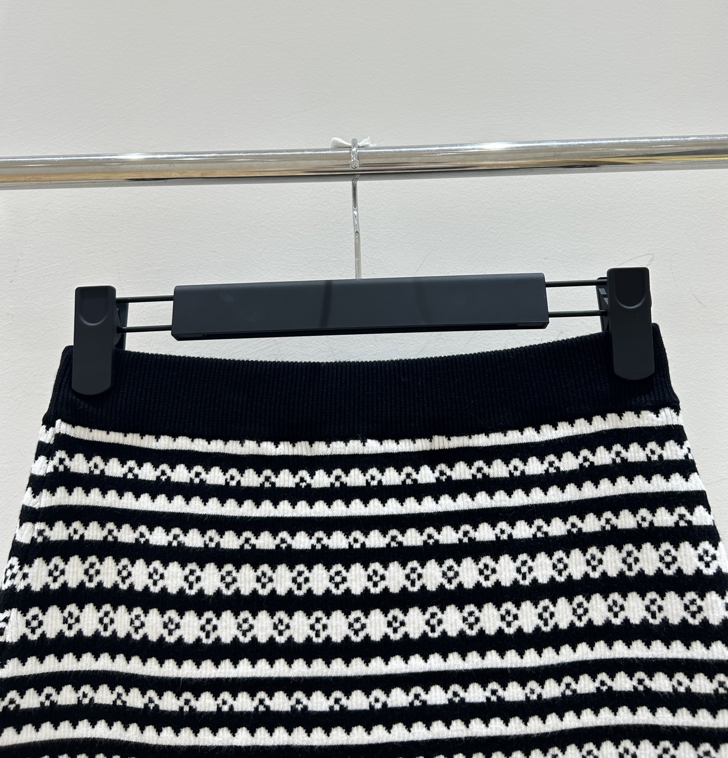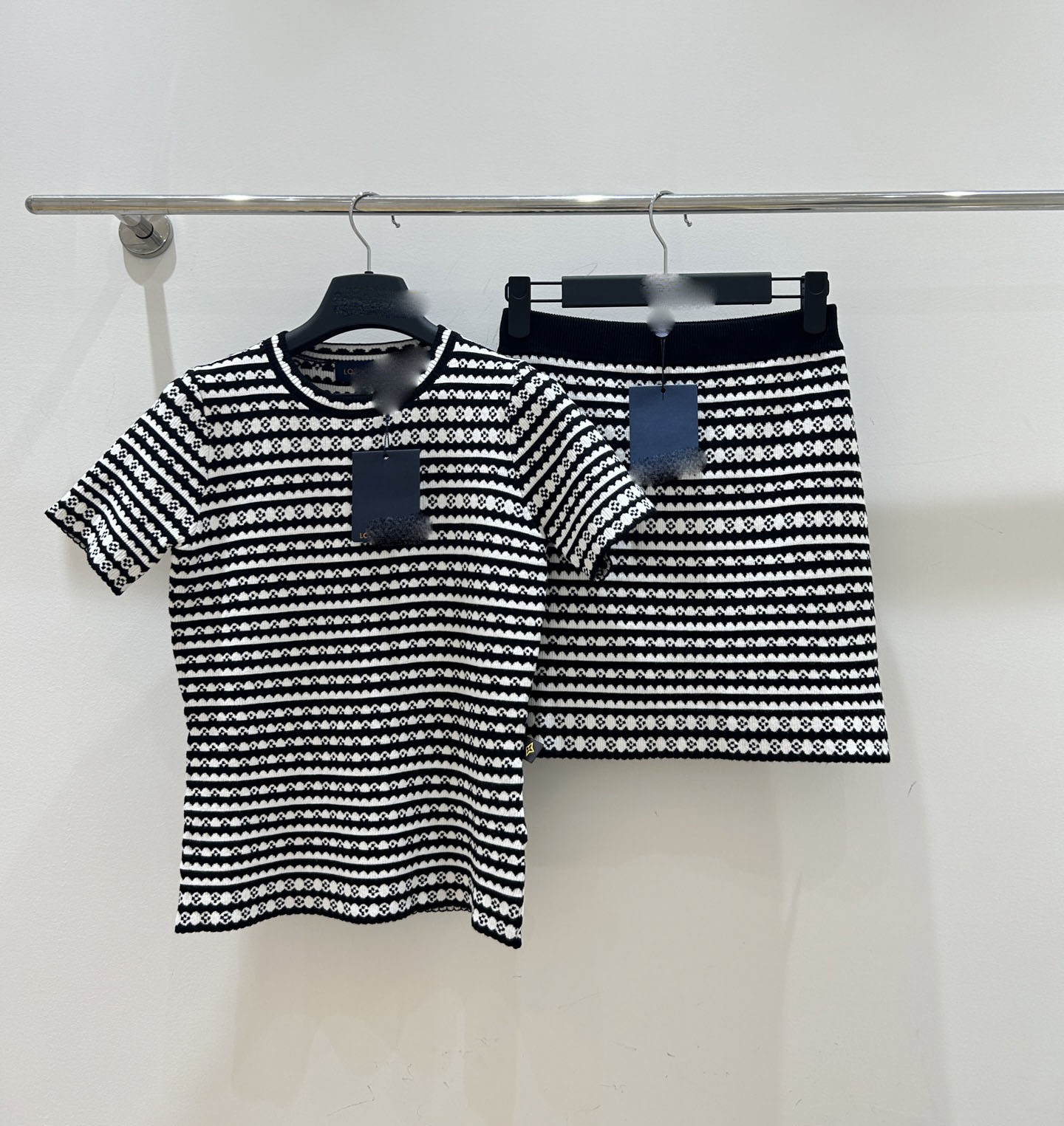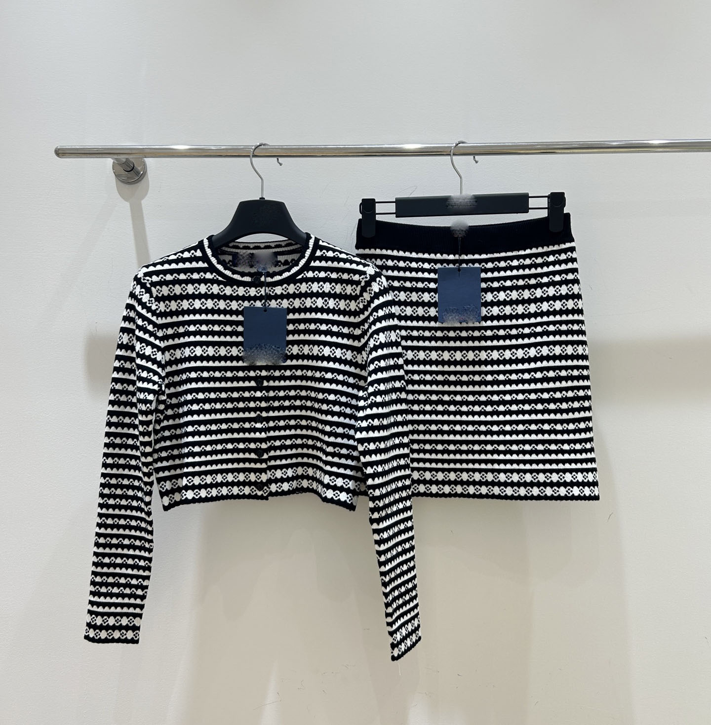 Lujia 시리즈 클래식 스트라이프 패션 여성 의류 25 새로운 라운드 넥 니트 카디건 반팔 힙 스커트 패션 슈트