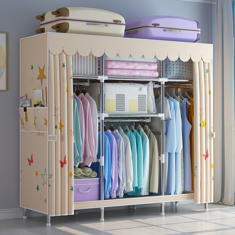 임대 주택용 간단한 천 옷장 강철 파이프 두꺼운 옷장 홈 침실 기숙사 보관 캐비닛 국경 간 공장 대외 무역 도매스토어 가기