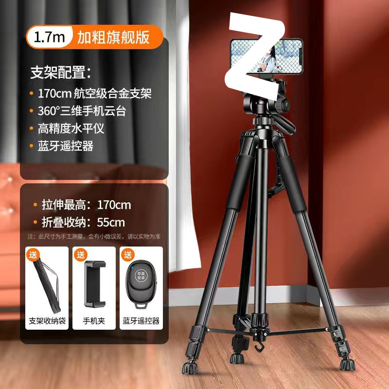 • 1.7m 카메라 및 휴대폰용 범용 삼각대 - 삼각대 + 휴대폰 클립 + 보관 가방 + 블루투스 리모컨