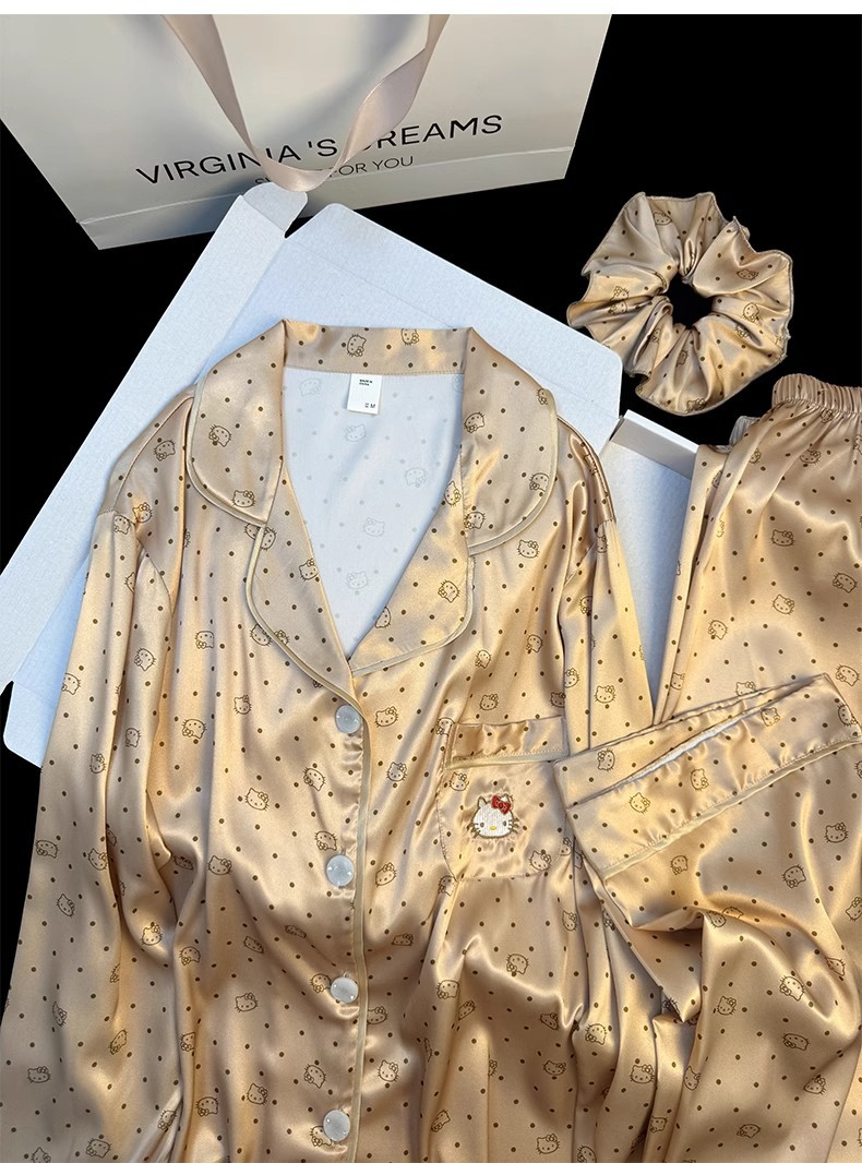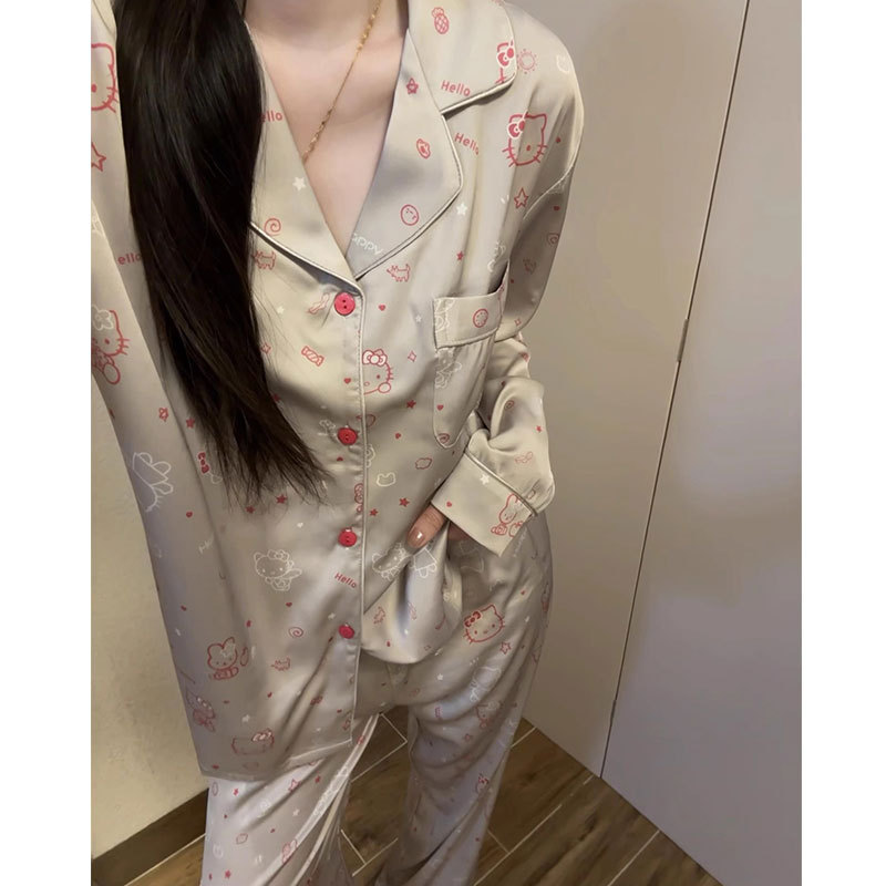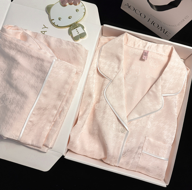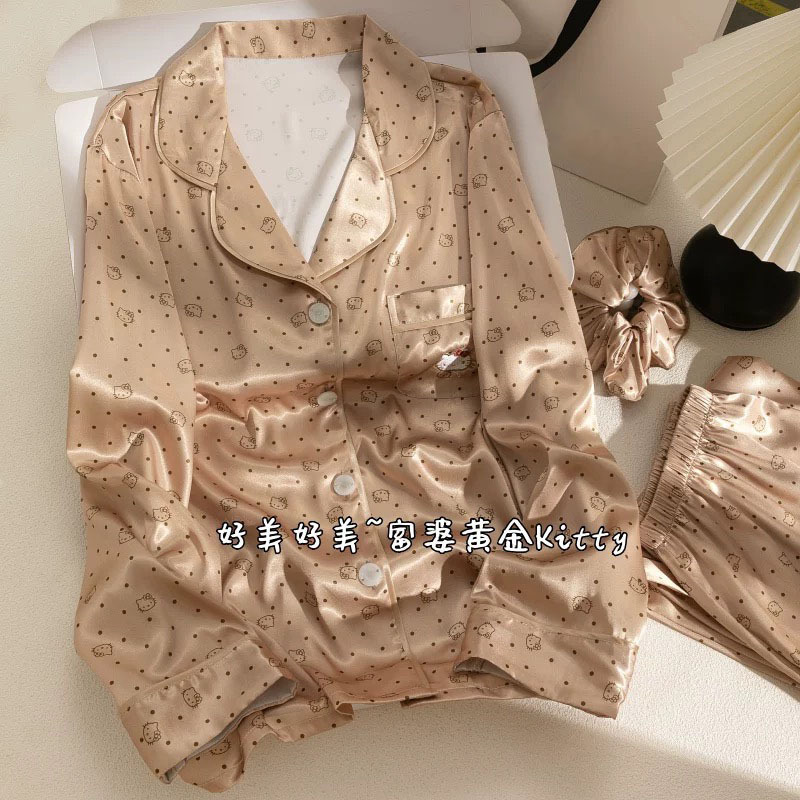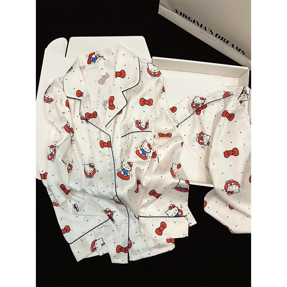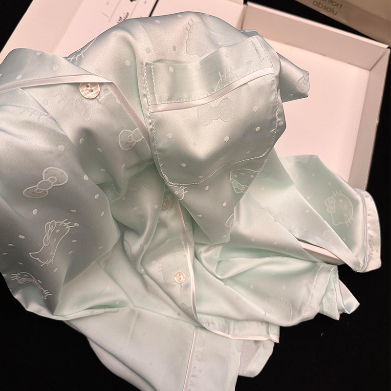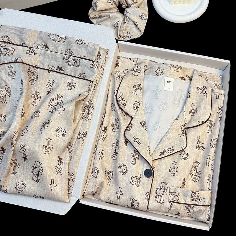 여성용 긴팔 긴바지 파자마, 럭셔리 스타일, 달콤한 소녀풍, 아이스 실크, 모조 실크, 얇은 여성 홈웨어 투피스 세트