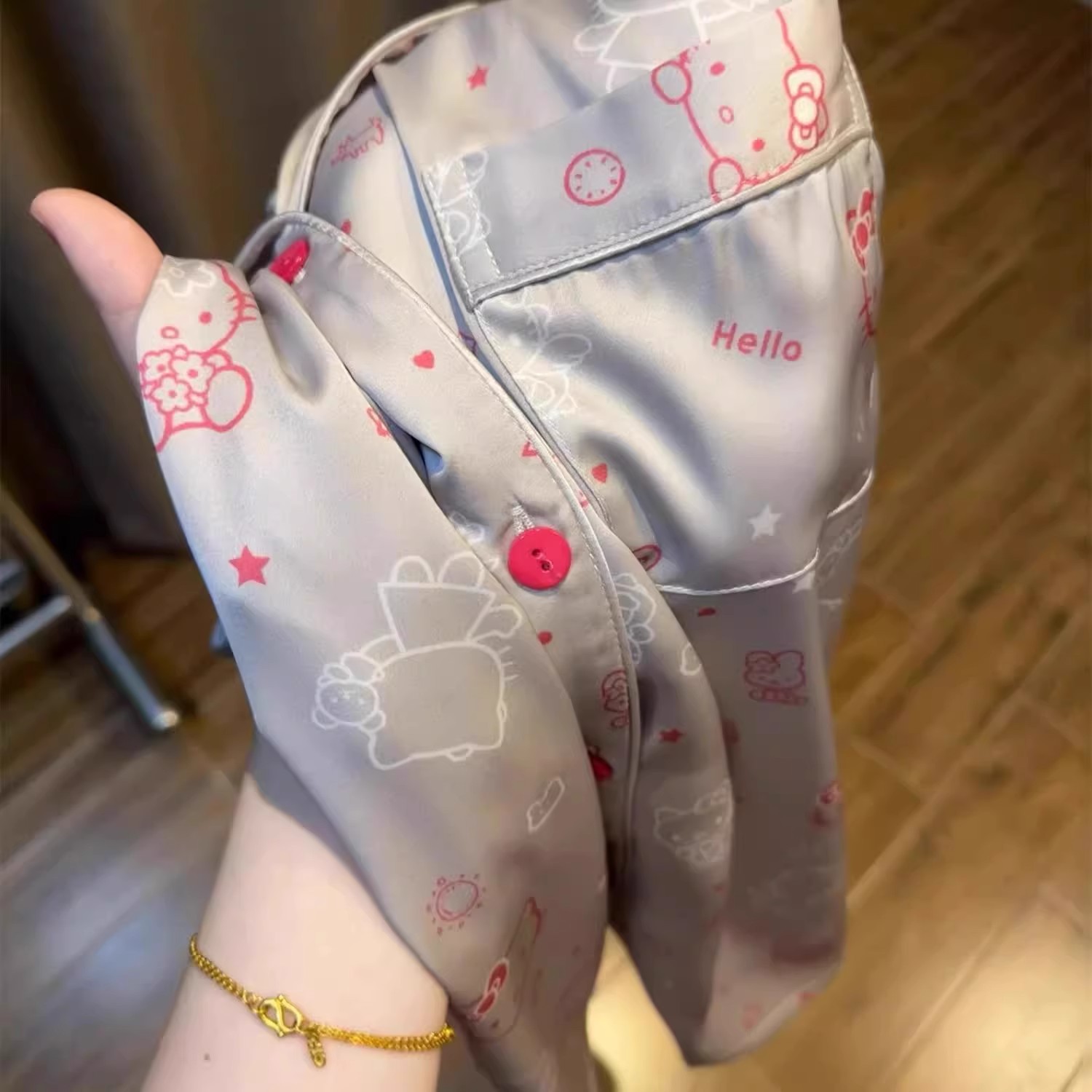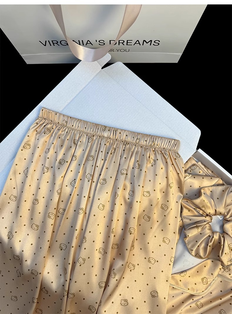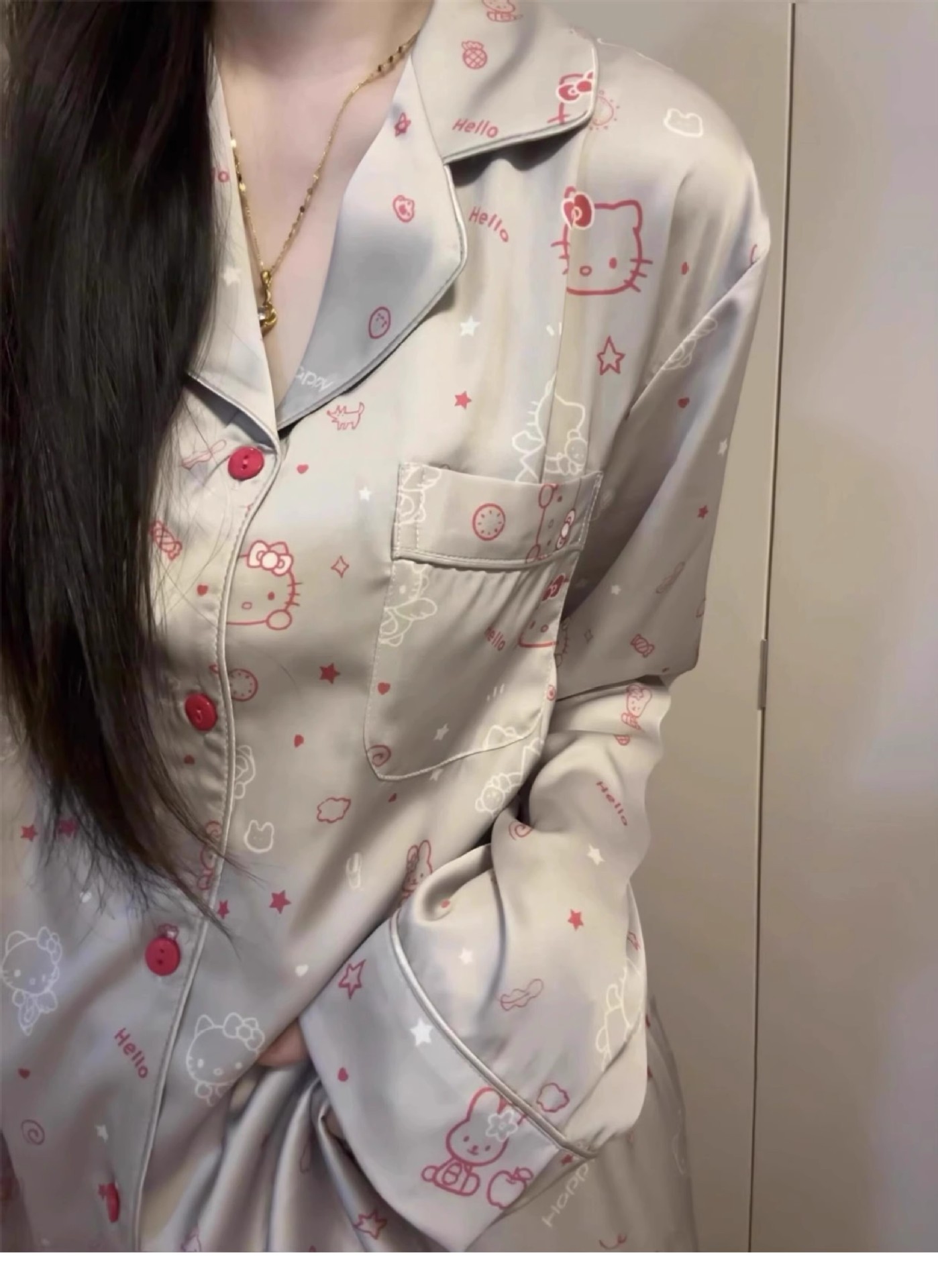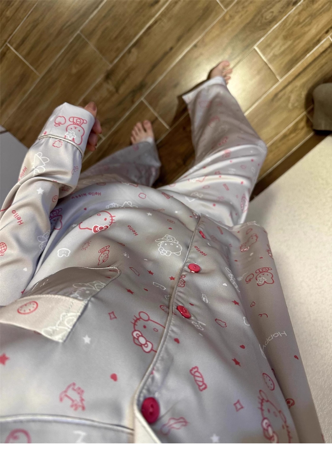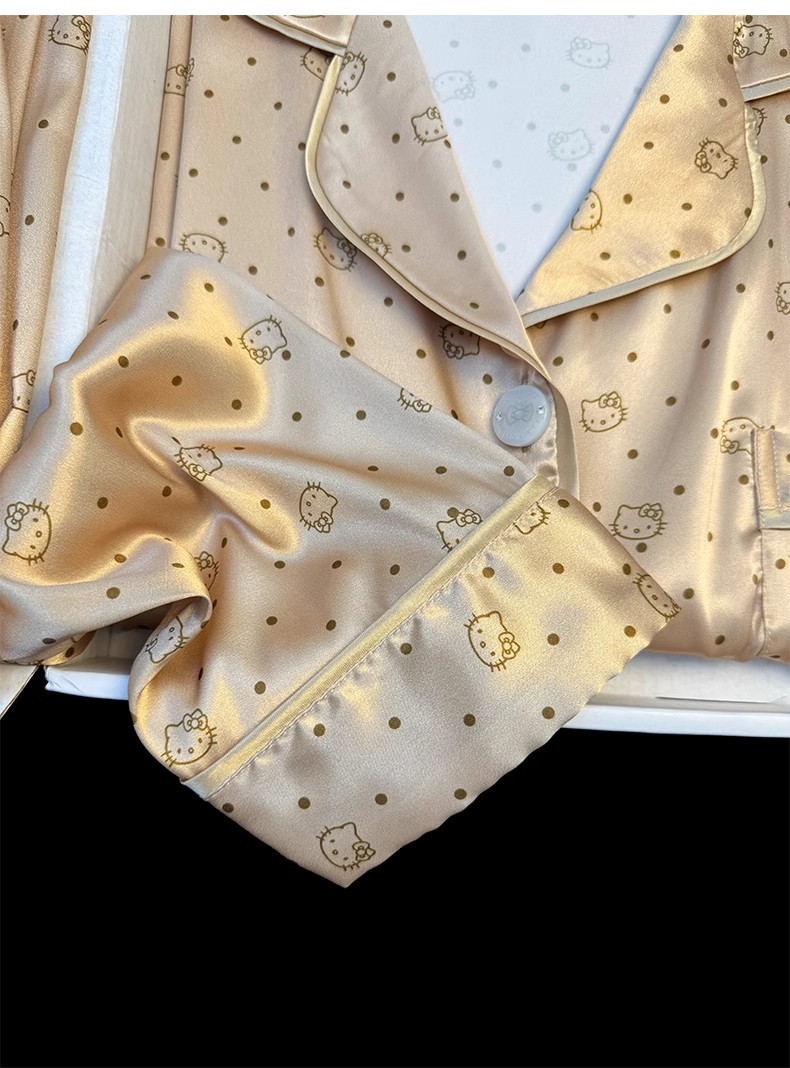 여성용 긴팔 긴바지 파자마, 럭셔리 스타일, 달콤한 소녀풍, 아이스 실크, 모조 실크, 얇은 여성 홈웨어 투피스 세트