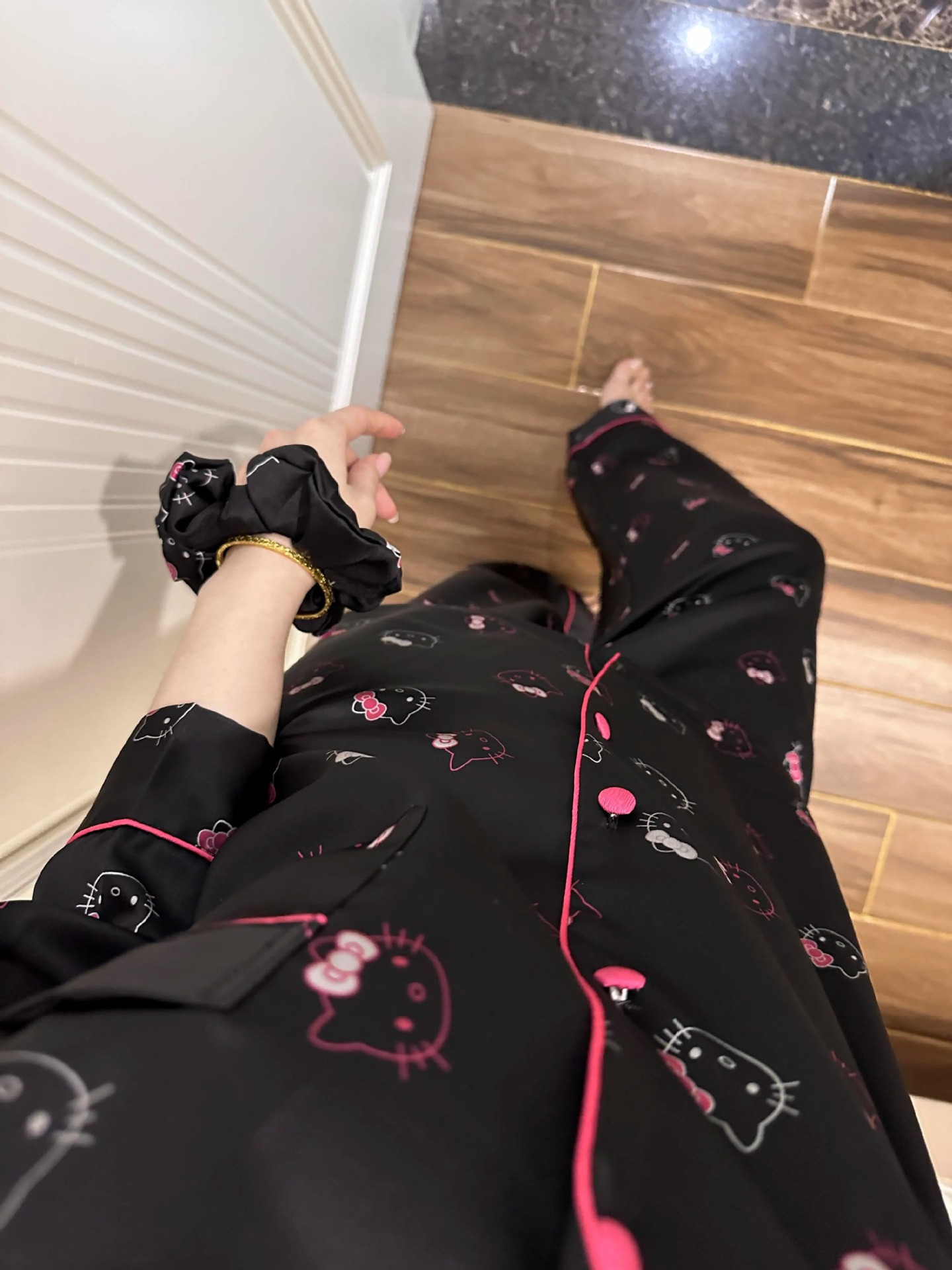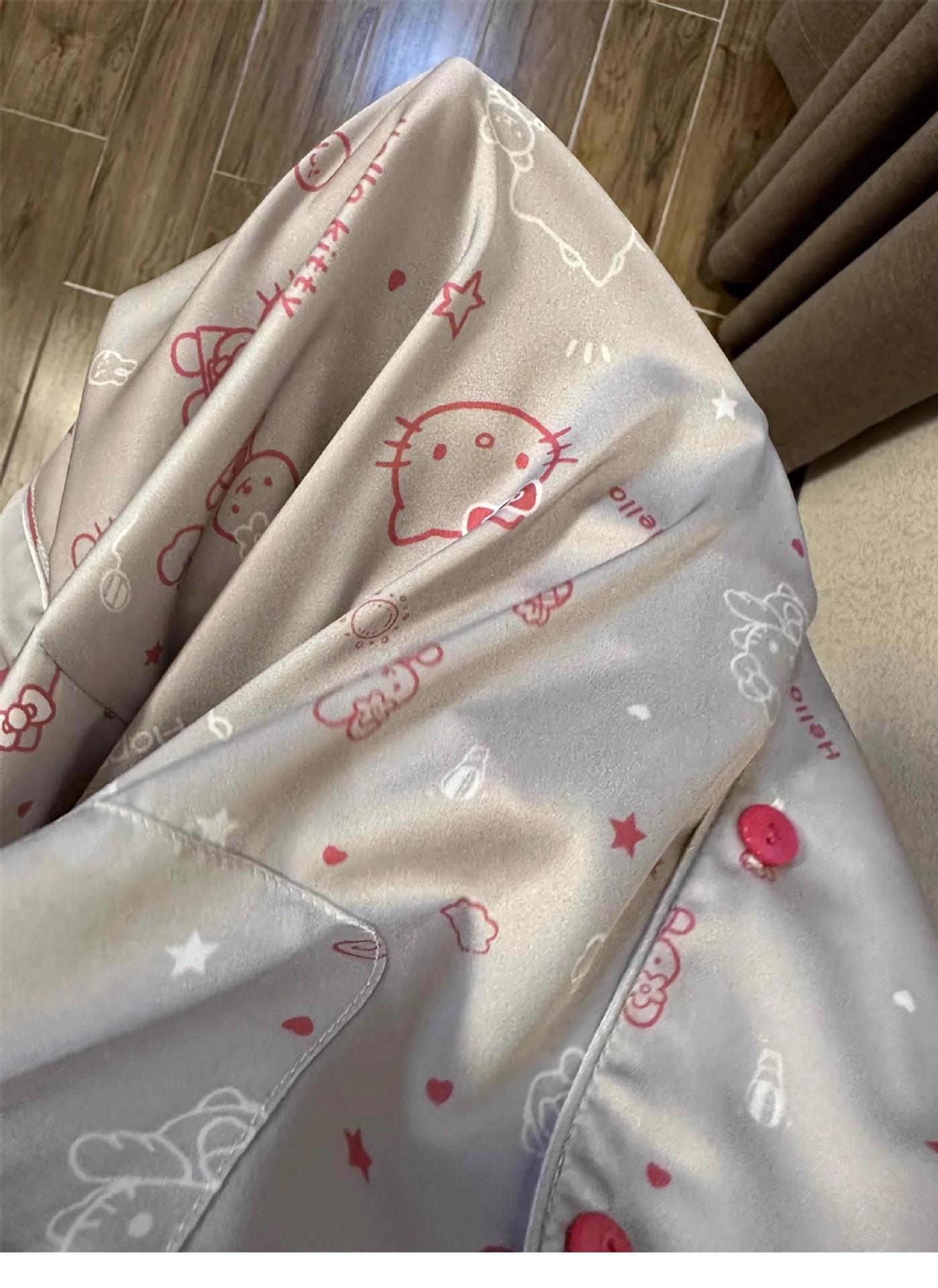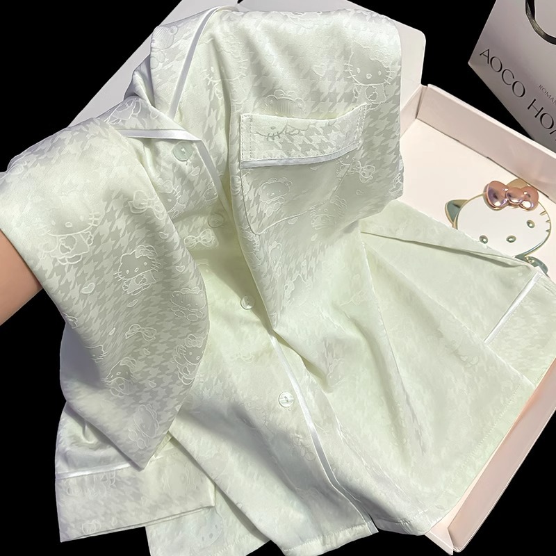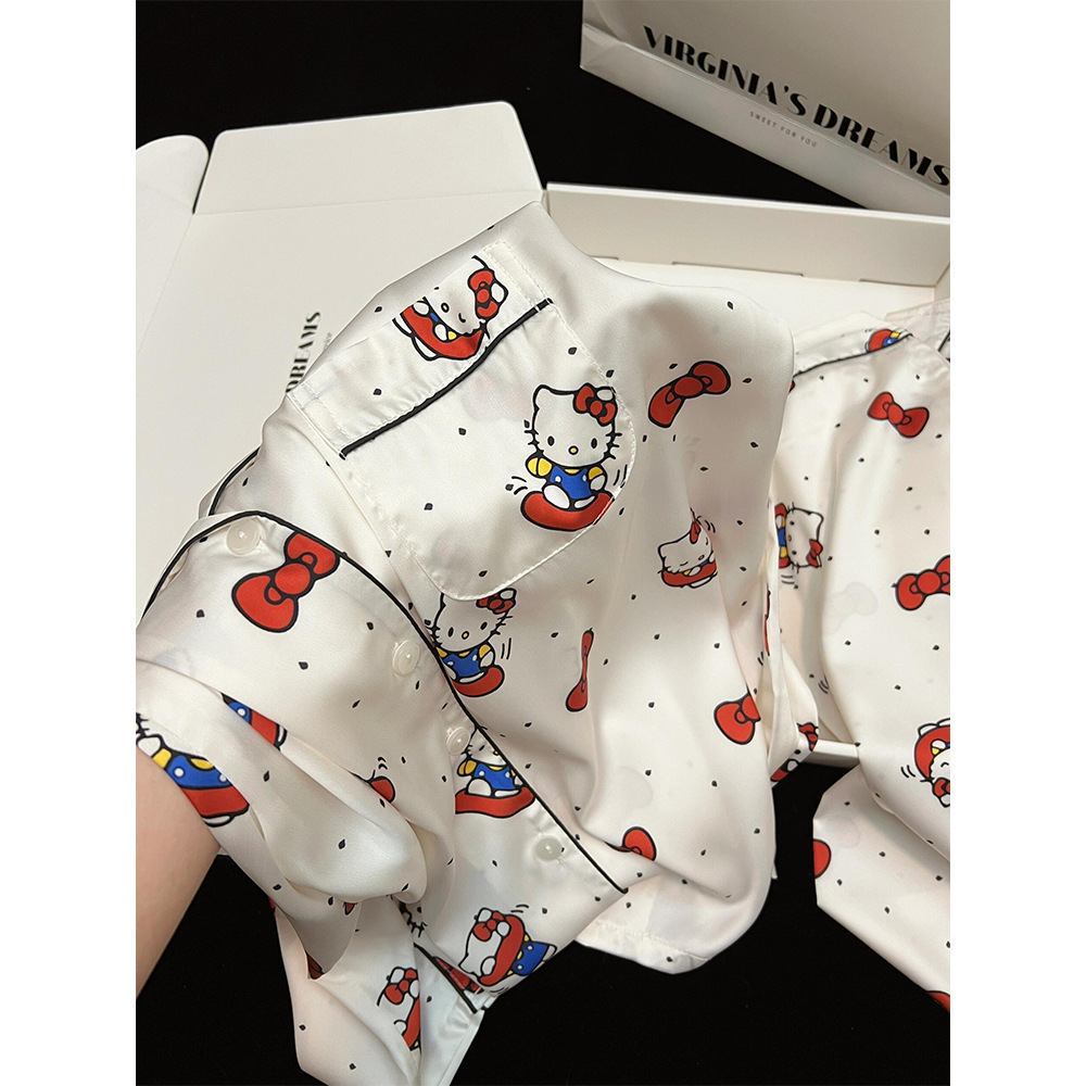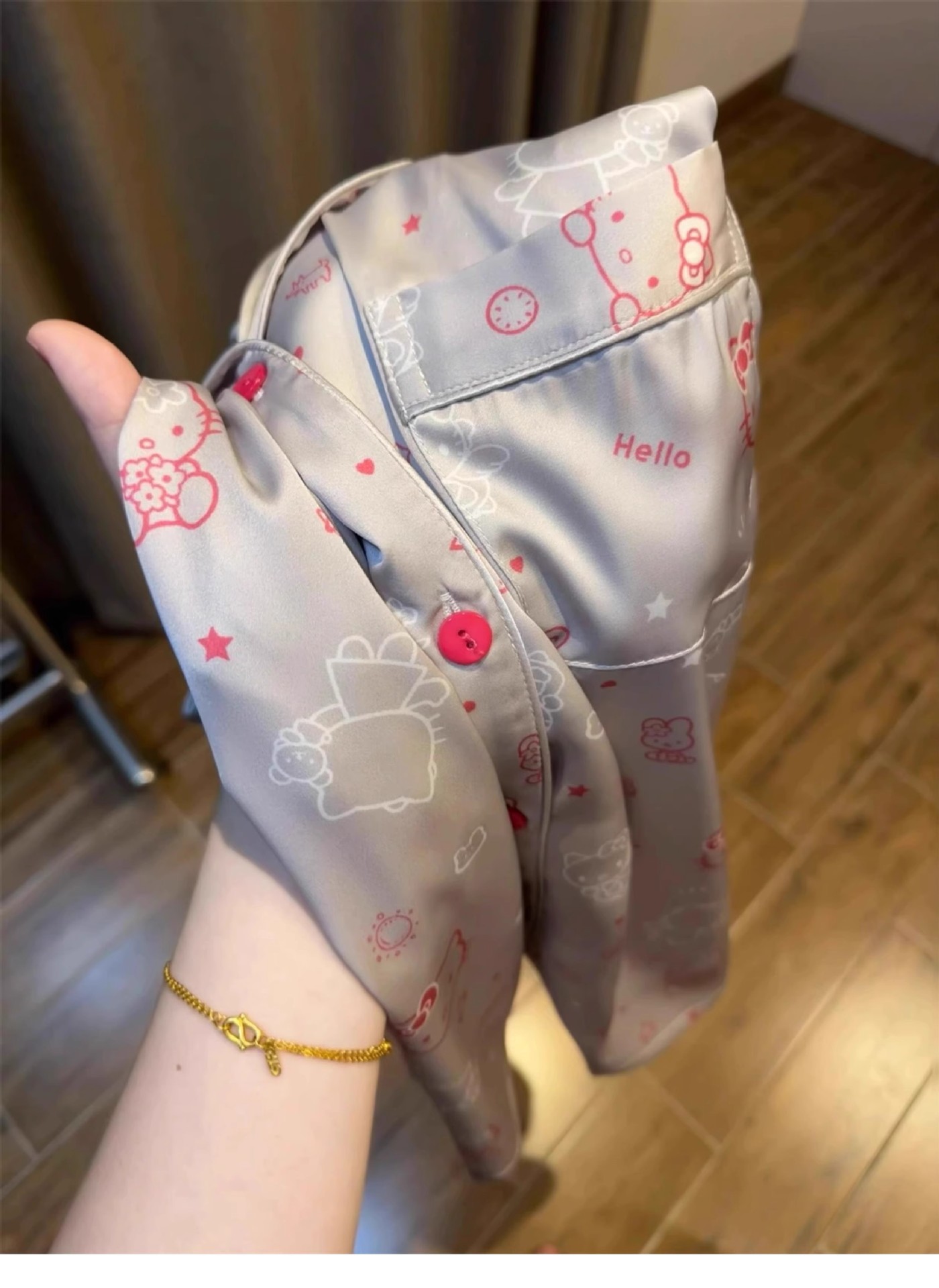 여성용 긴팔 긴바지 파자마, 럭셔리 스타일, 달콤한 소녀풍, 아이스 실크, 모조 실크, 얇은 여성 홈웨어 투피스 세트