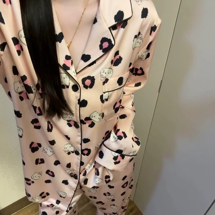 여성용 긴팔 긴바지 파자마, 럭셔리 스타일, 달콤한 소녀풍, 아이스 실크, 모조 실크, 얇은 여성 홈웨어 투피스 세트스토어 가기