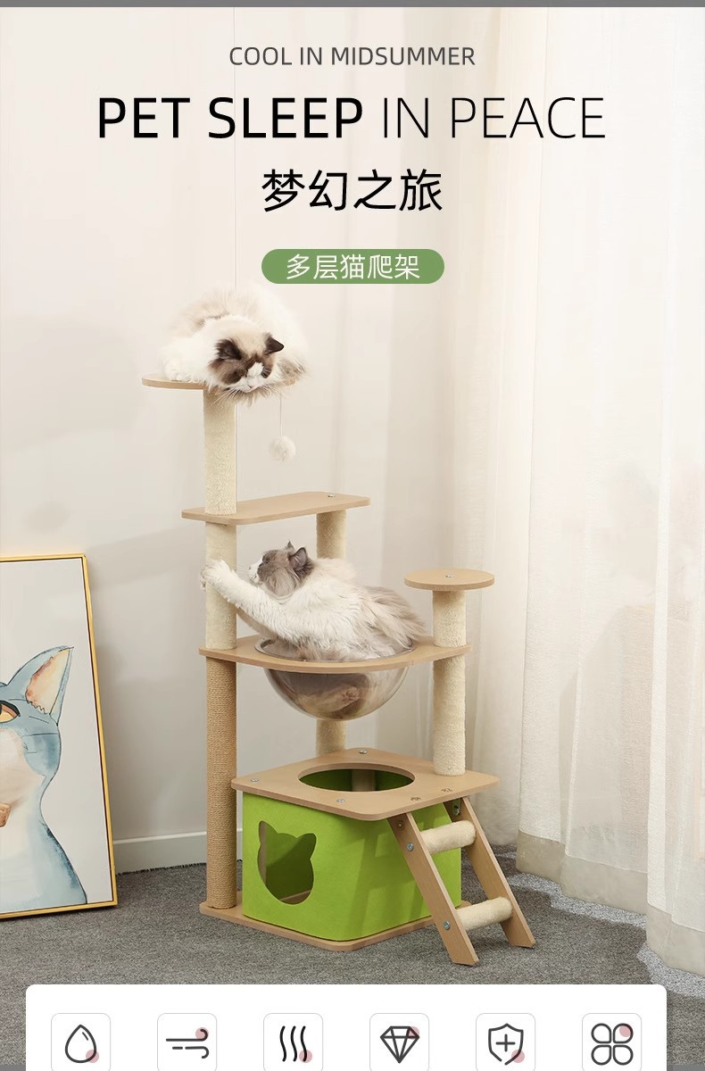 고양이 클라이밍 프레임, 고양이 둥지, 고양이 트리 일체형 여름 고양이 클라이밍 프레임, 천둥, 우주 캡슐, 나무 사다리, 고양이 놀이용 클라이밍 프레임