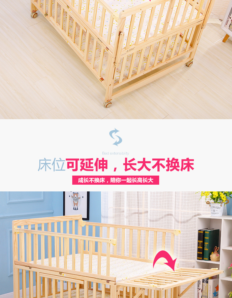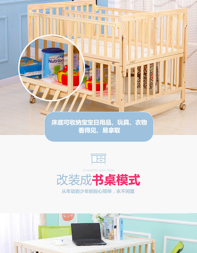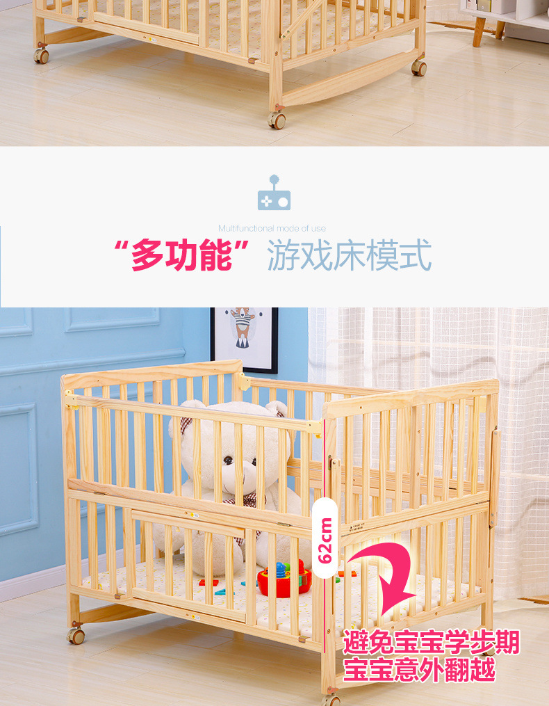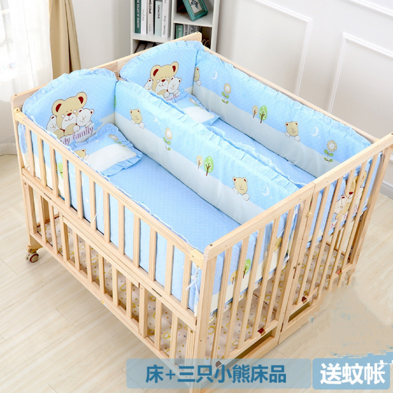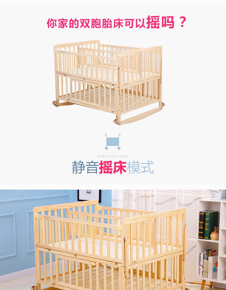 단단한 나무 페인트가 없는 더블 아기 침대, 쌍둥이 유아용 침대, 이동식 다기능 흔들리는 BB 침대, 대형 침대스토어 가기