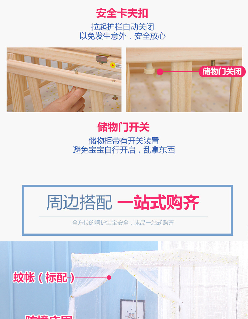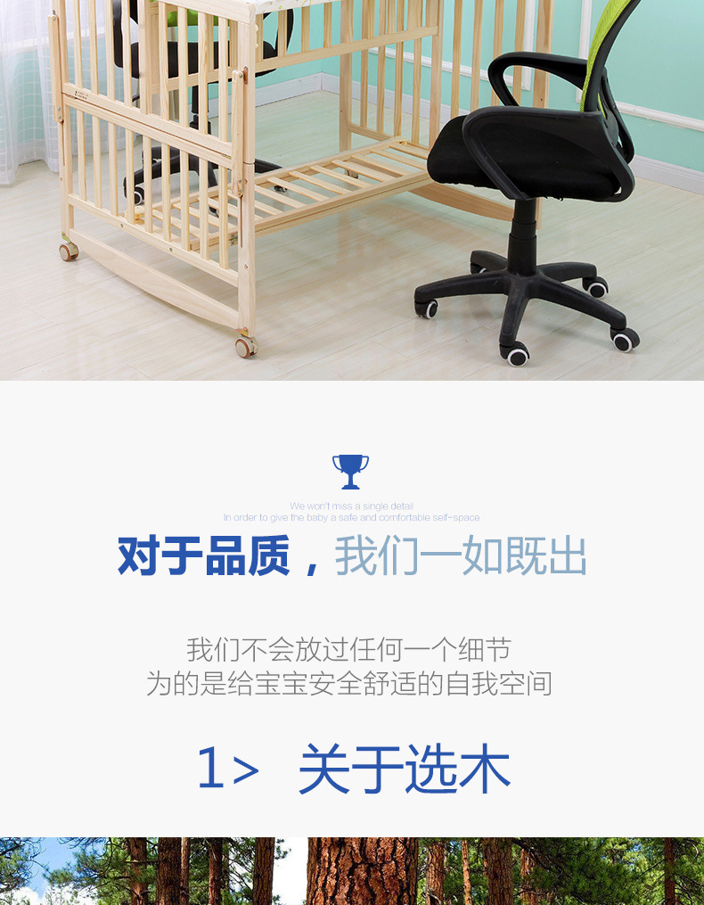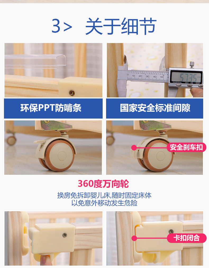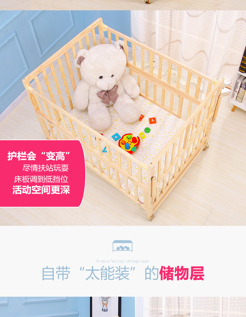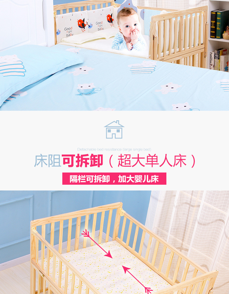 단단한 나무 페인트가 없는 더블 아기 침대, 쌍둥이 유아용 침대, 이동식 다기능 흔들리는 BB 침대, 대형 침대스토어 가기