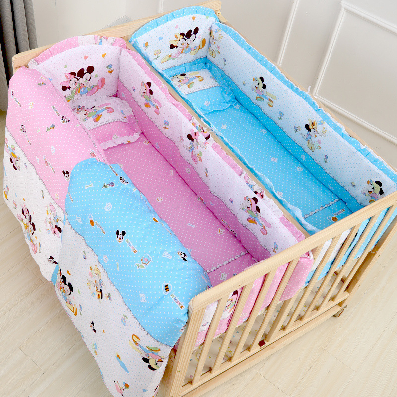 • 유아용 침대 + 블루 및 핑크 미키 침구 + 이불(모기장 포함)
