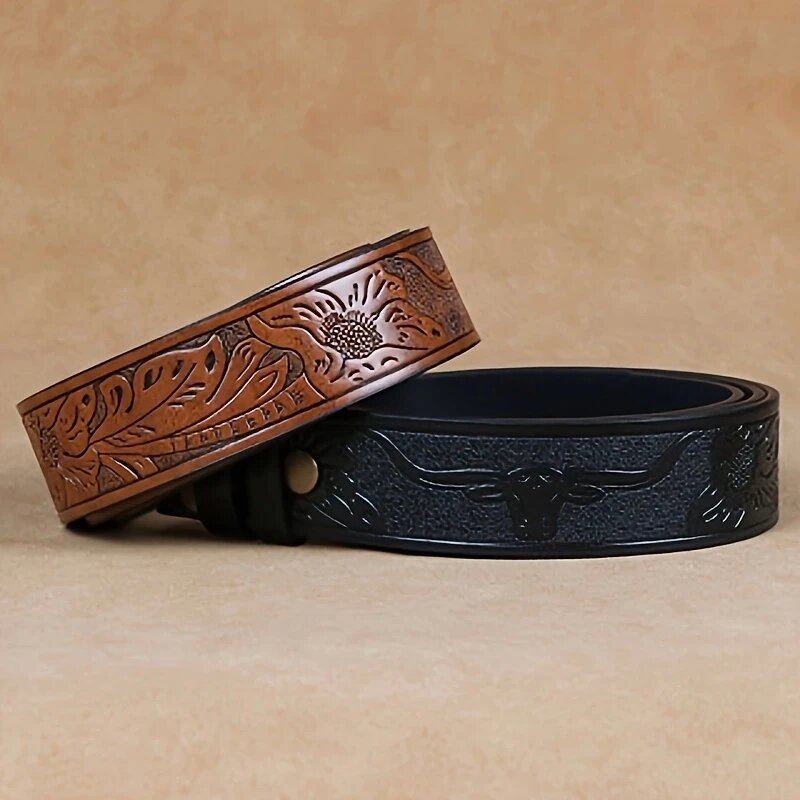 남성용 버클리스 벨트, 고급 서양식 카우보이 뿔 엠보싱 벨트, 천공 및 조절 가능, 공장 재고 있음스토어 가기
