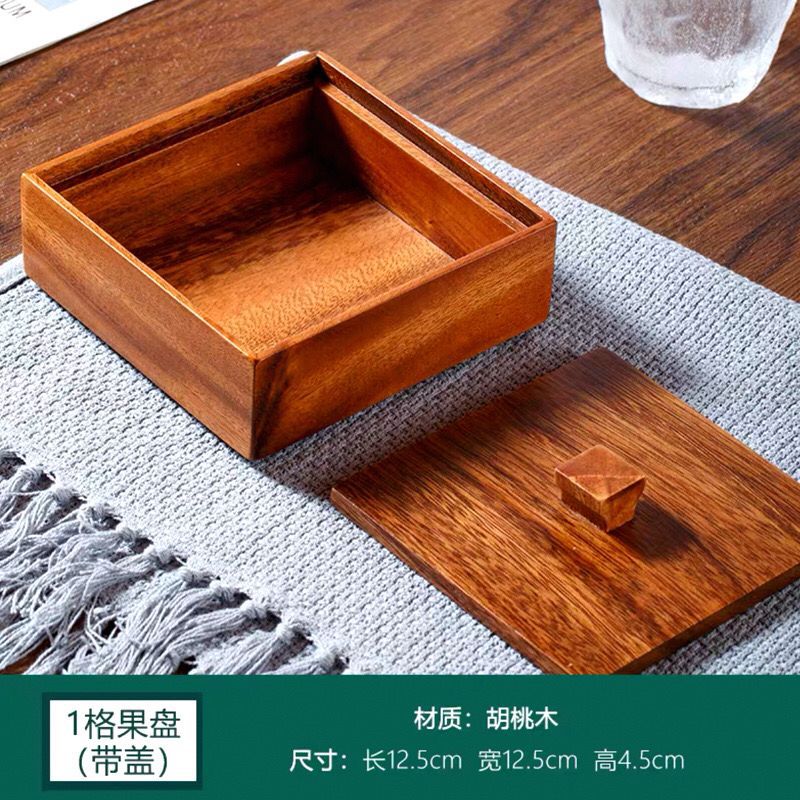 일본식 호두나무 견과류 상자 사각형 쌓을 수 있는 난로 주변 원목 간식 접시 건과일 접시 달콤한 과자 작은 트레이