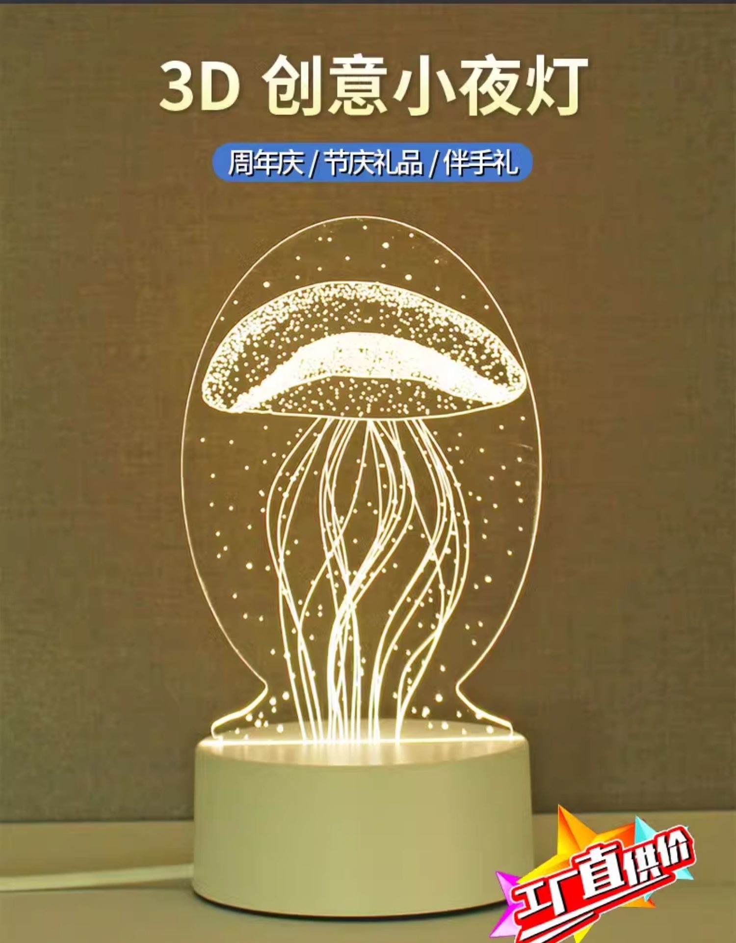 3D 창의적인 해파리 무드등 DIY 야광 모던 침대 옆 테이블 램프 침실 로맨틱 수면등 해외 도매 LED 램프