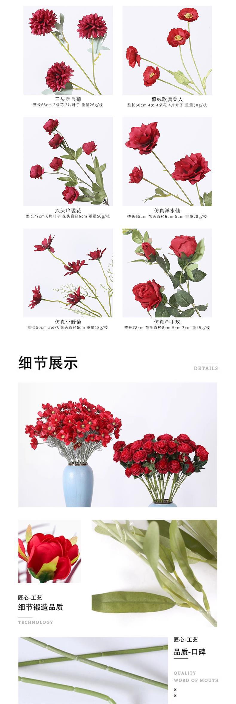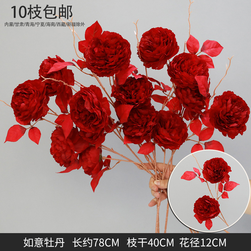 붉은 꽃 약혼 꽃 와인 레드 가짜 꽃 모란 웨딩 장면 테이블 꽃꽂이 웨딩 꽃 실크 꽃