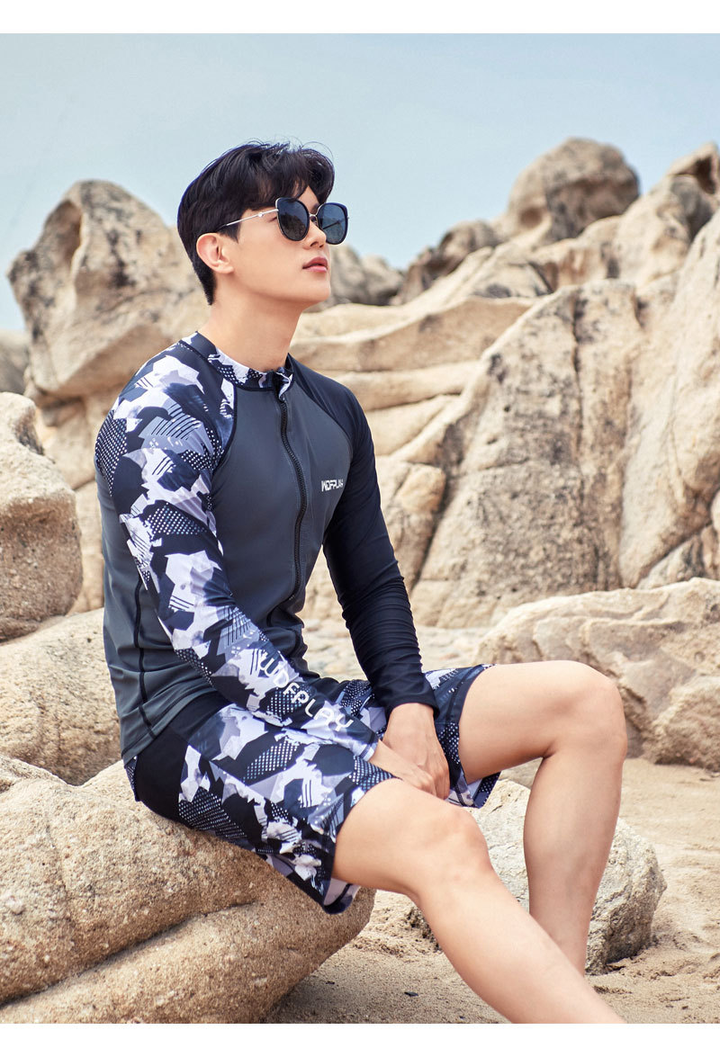 남성용 자외선 차단 수영복 세트, 슬리밍 잠수복, 서핑 해파리 수트, 로고 인쇄 가능, 한국식 속건 스포츠웨어스토어 가기