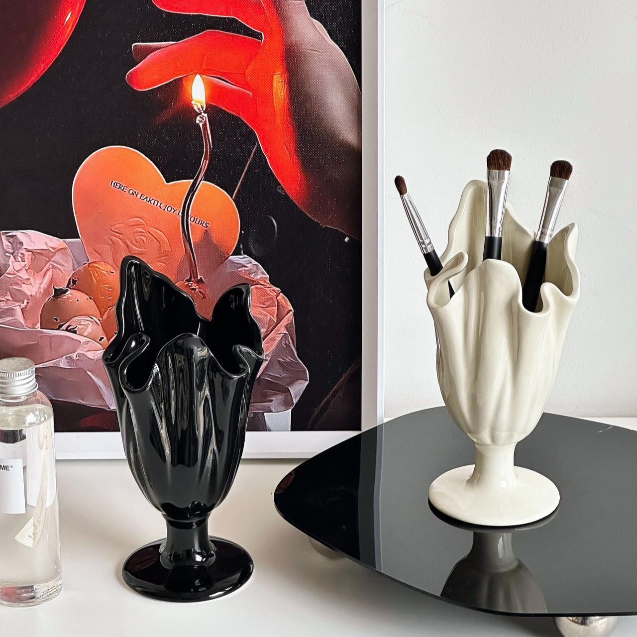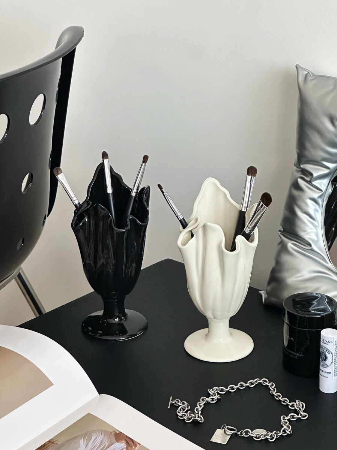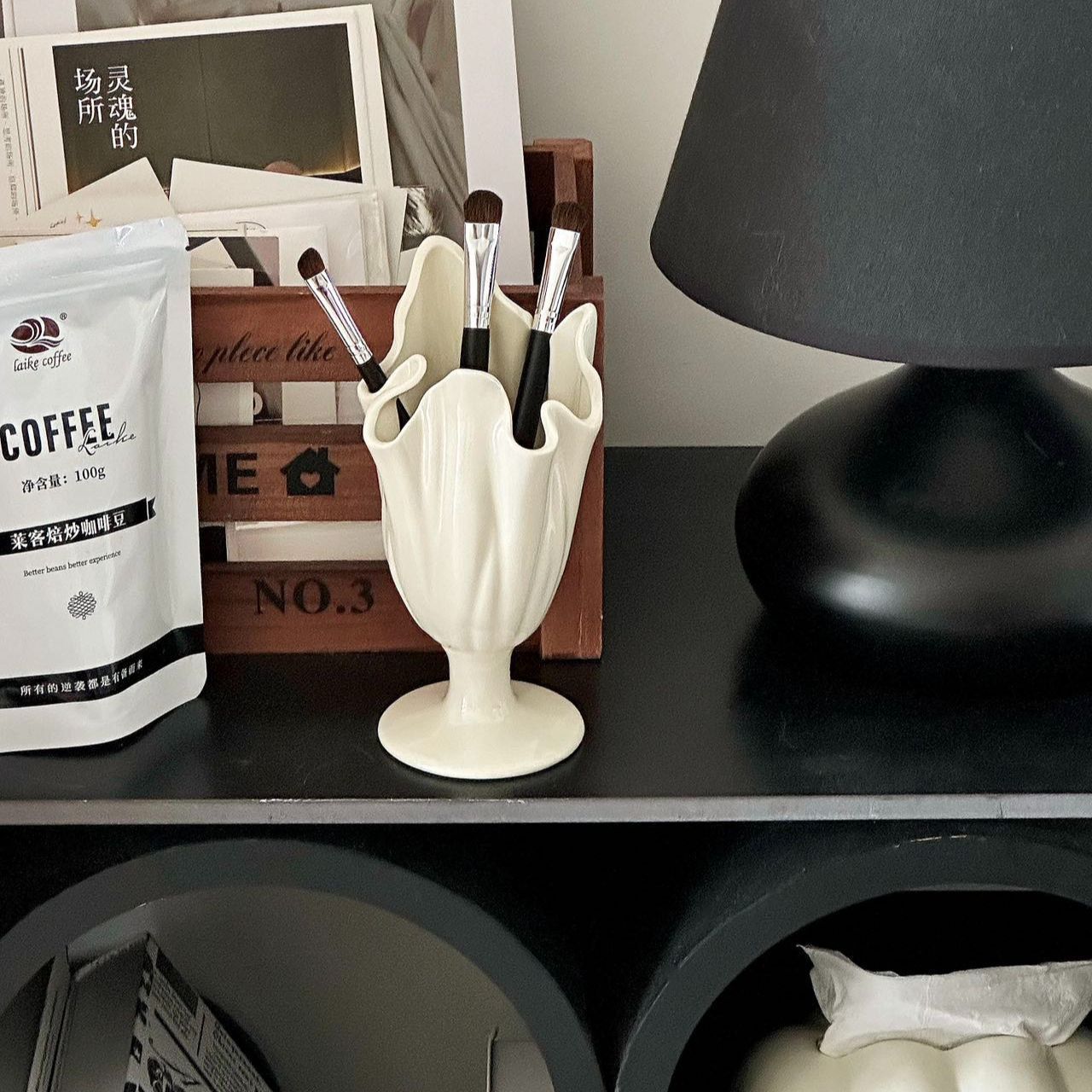 하이 엔드 메이크업 브러쉬 보관 튜브 데스크탑 크리 에이 티브 펜 홀더 세라믹 틈새 홈 장식 장식품 꽃병
