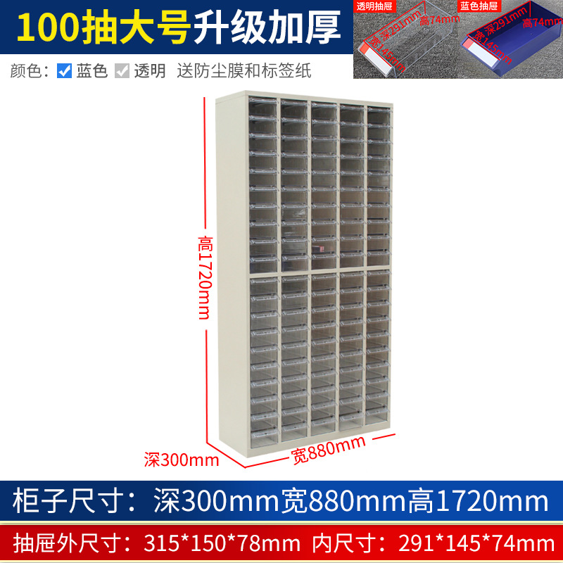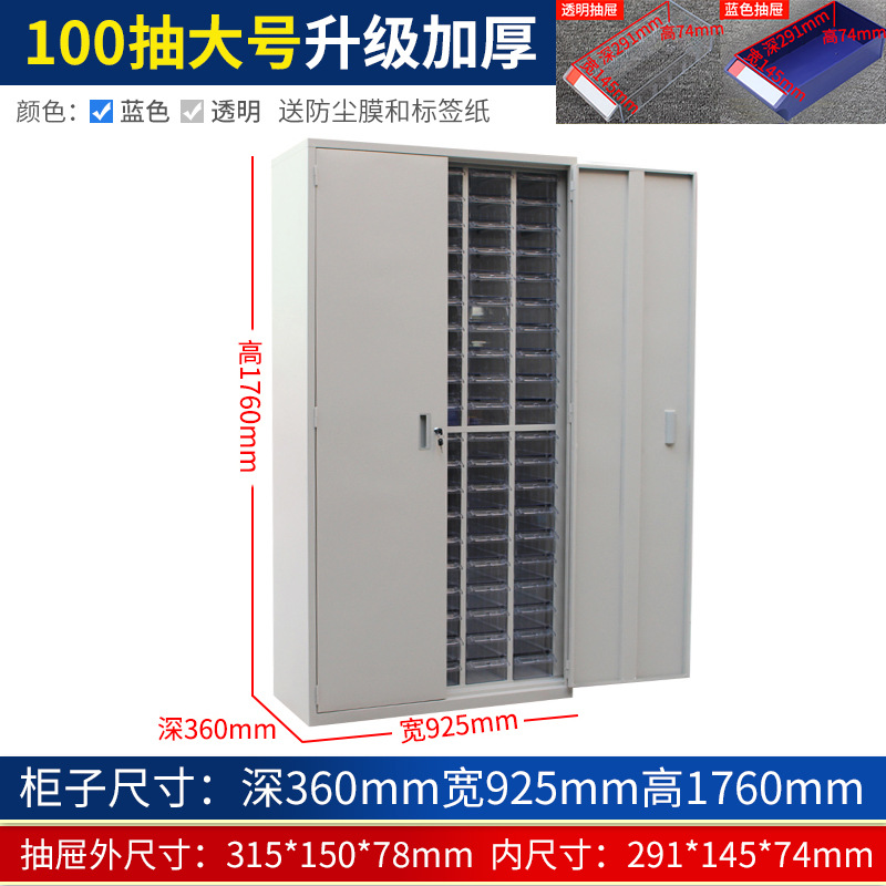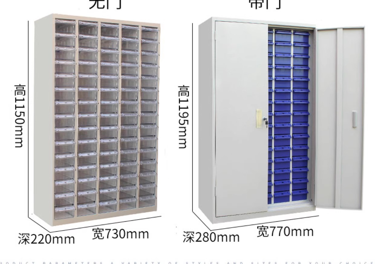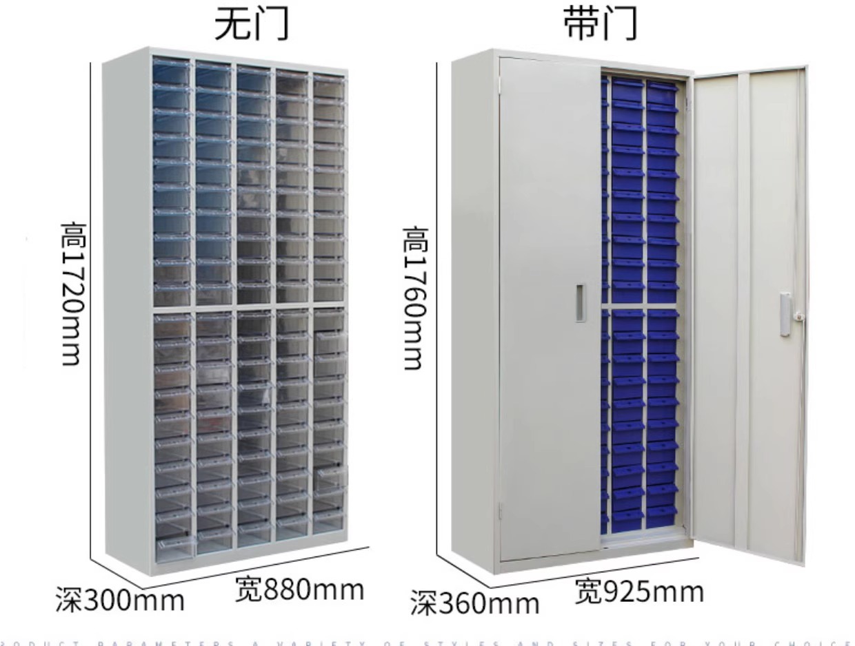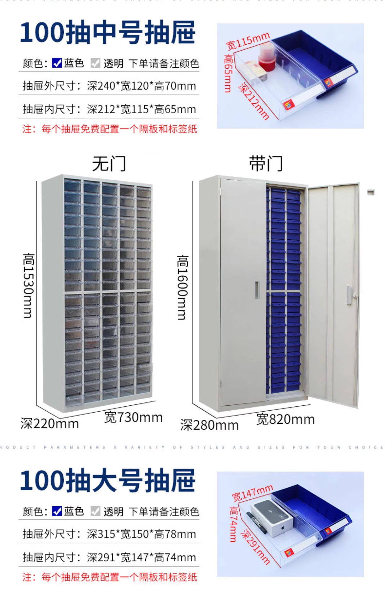 • 도어가 있는 100 서랍 부품 캐비닛(투명 서랍) - 작은 서랍