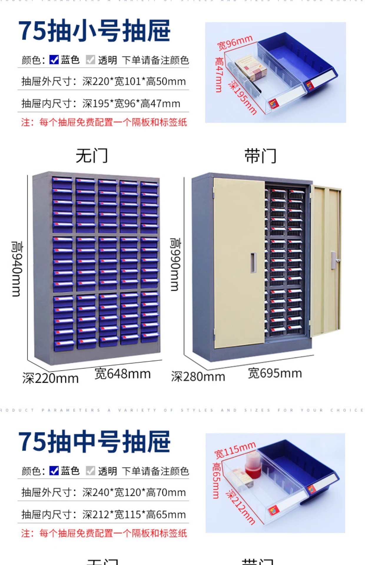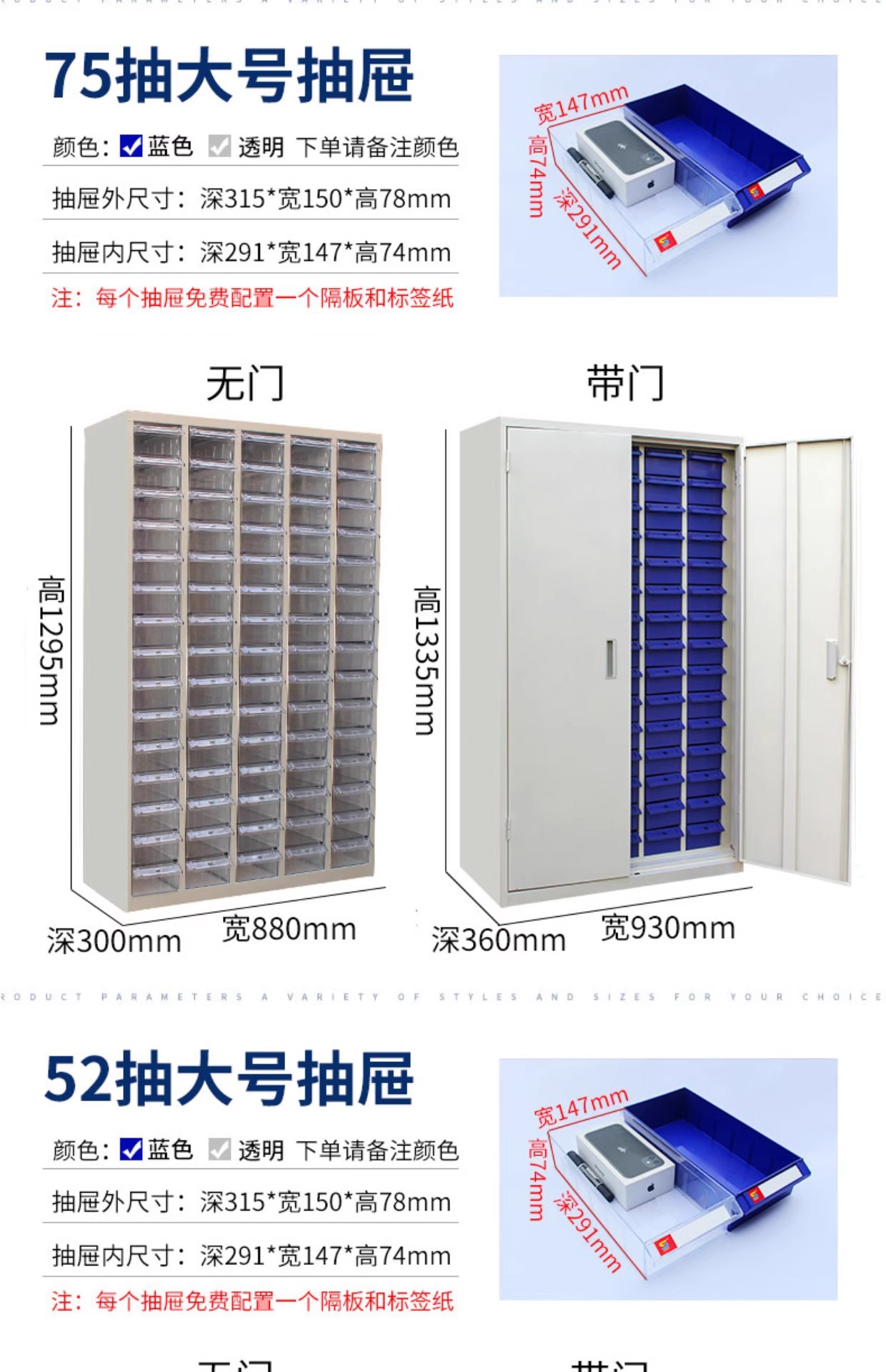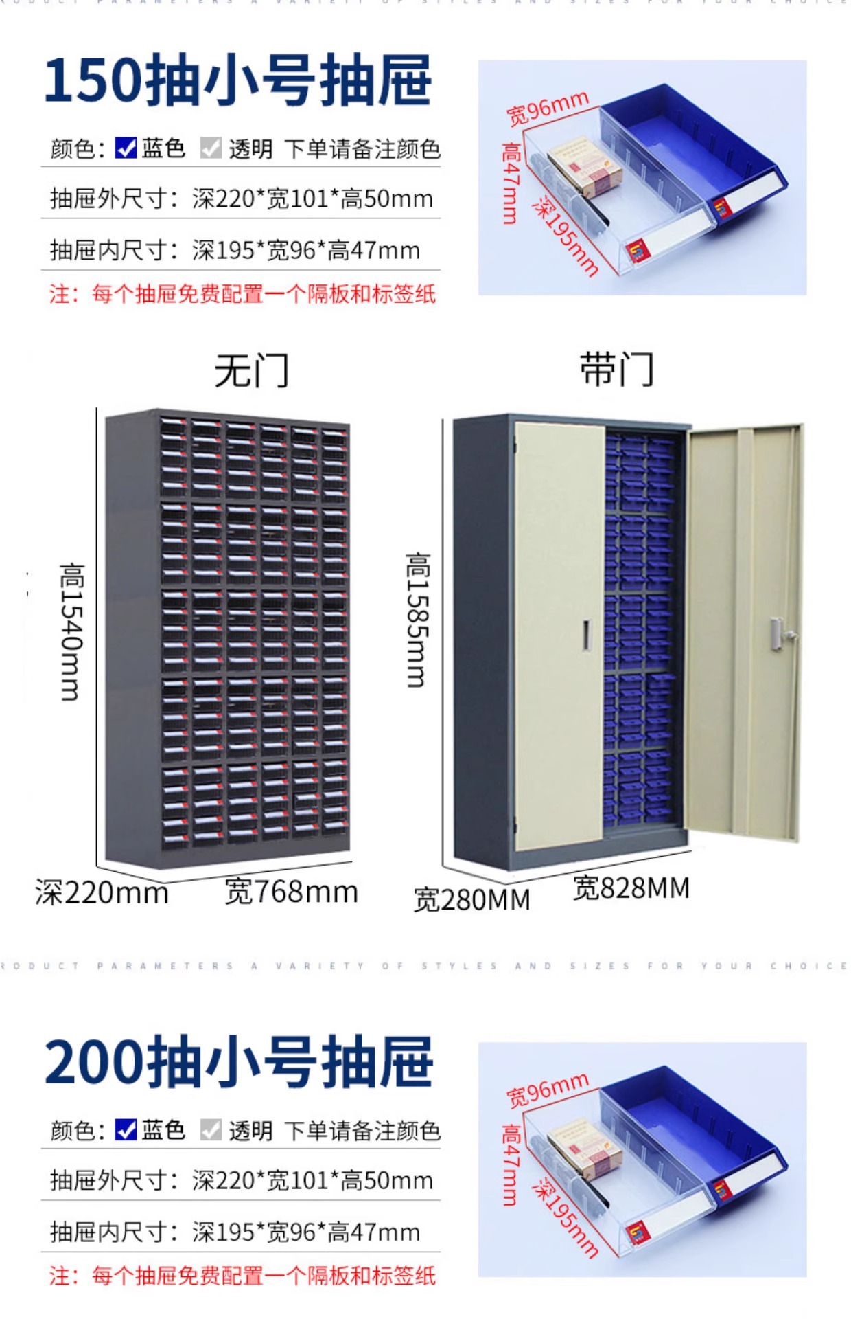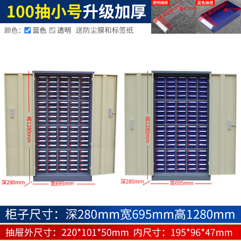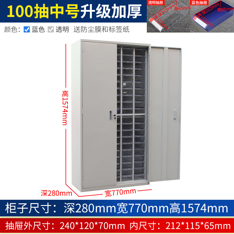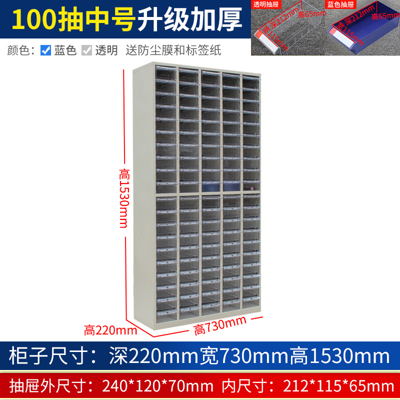 • 도어가 있는 100 서랍 부품 캐비닛(투명 서랍) - 작은 서랍