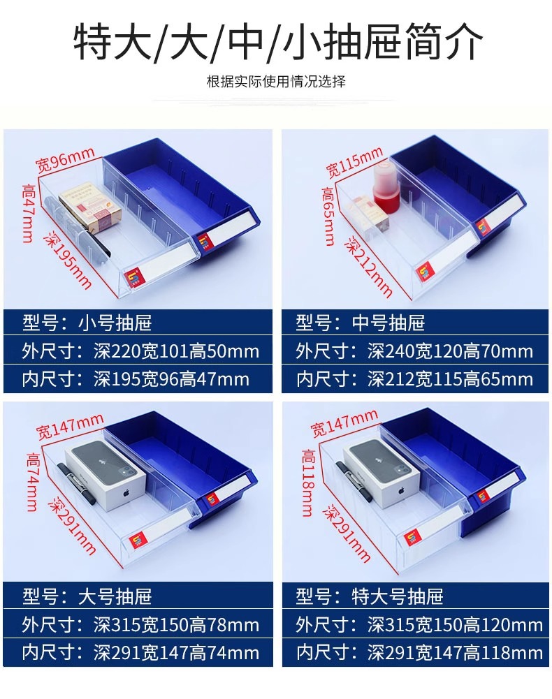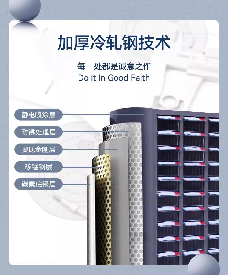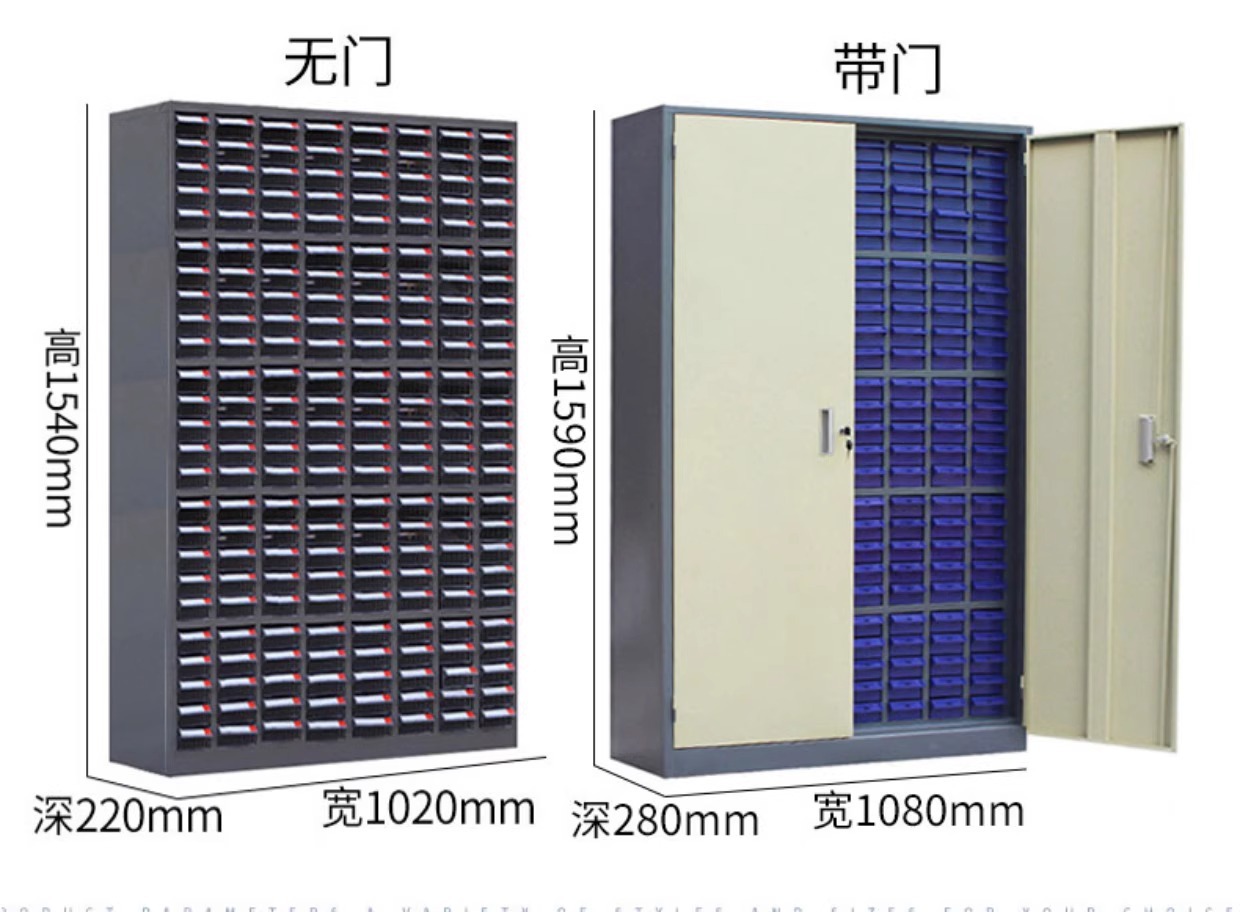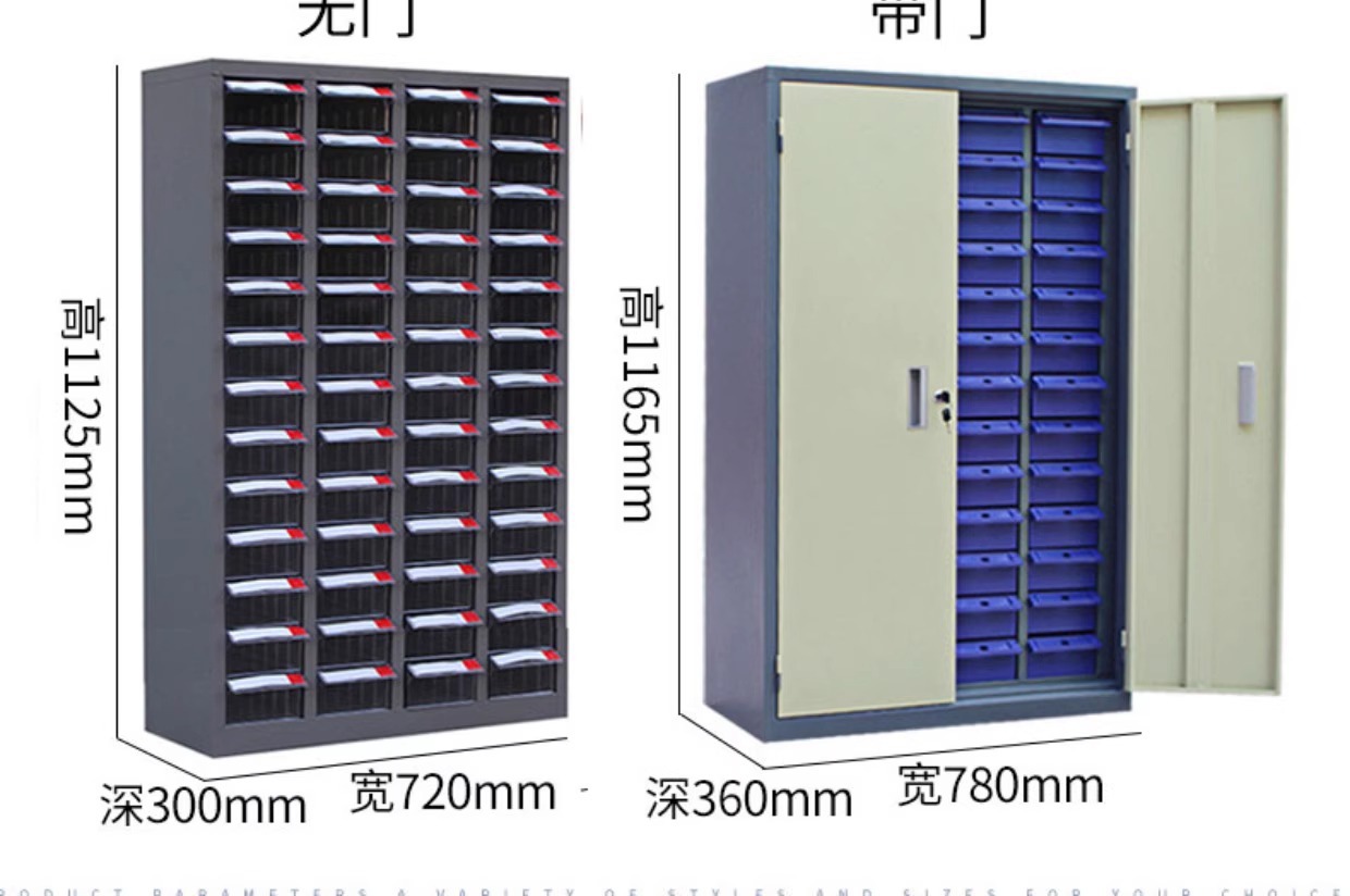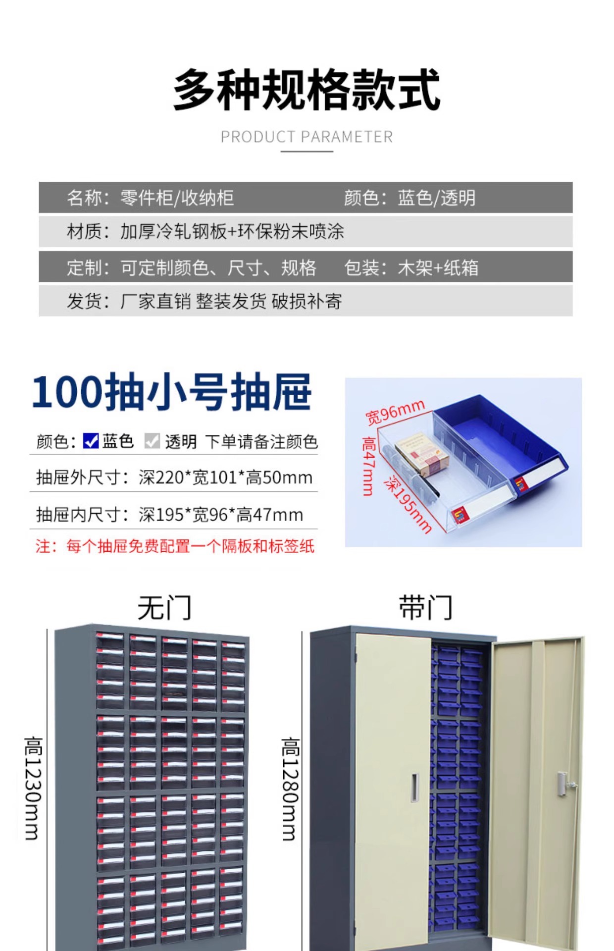 • 도어가 있는 100 서랍 부품 캐비닛(투명 서랍) - 작은 서랍