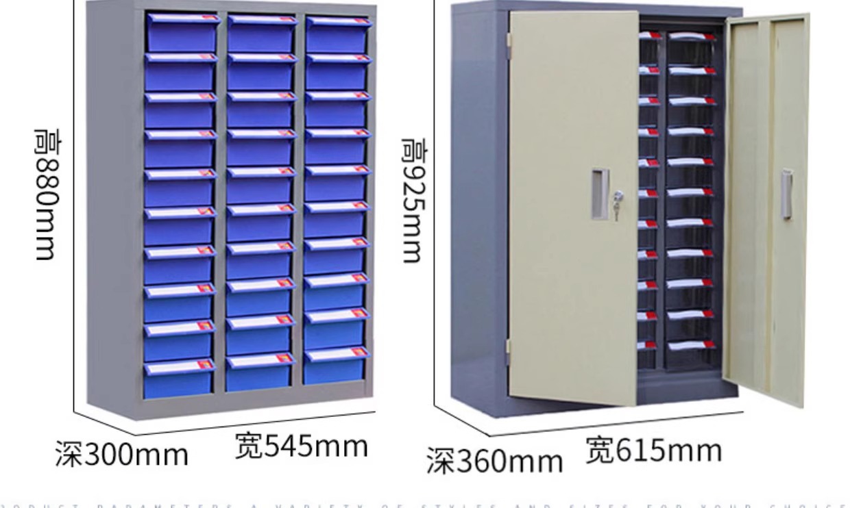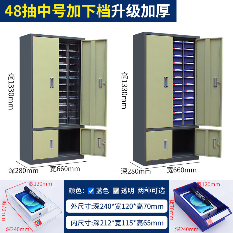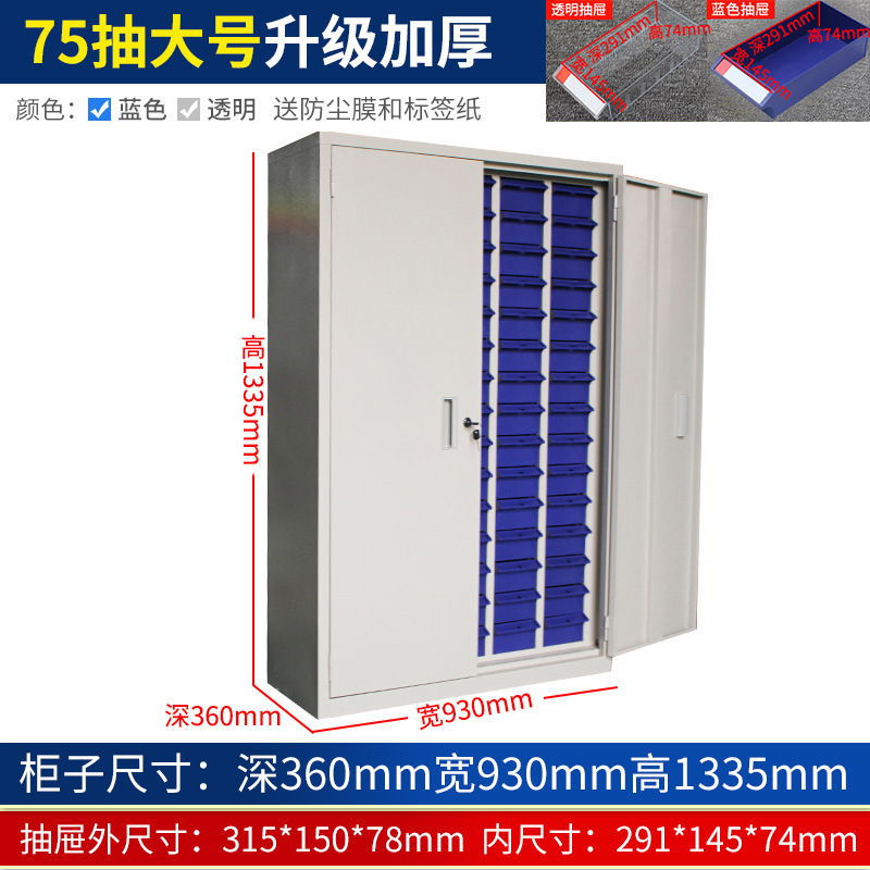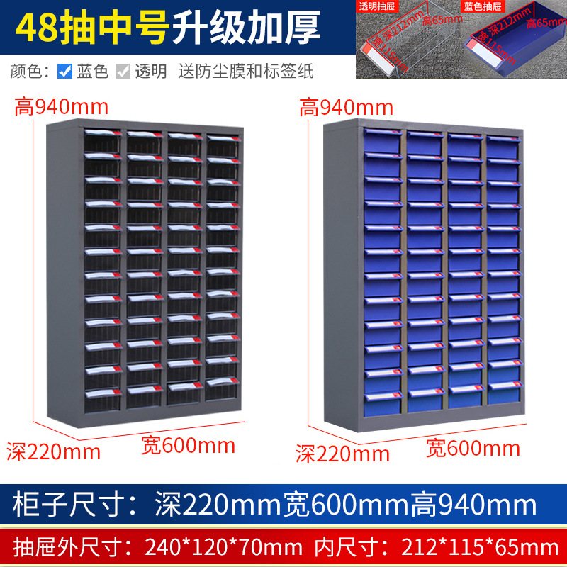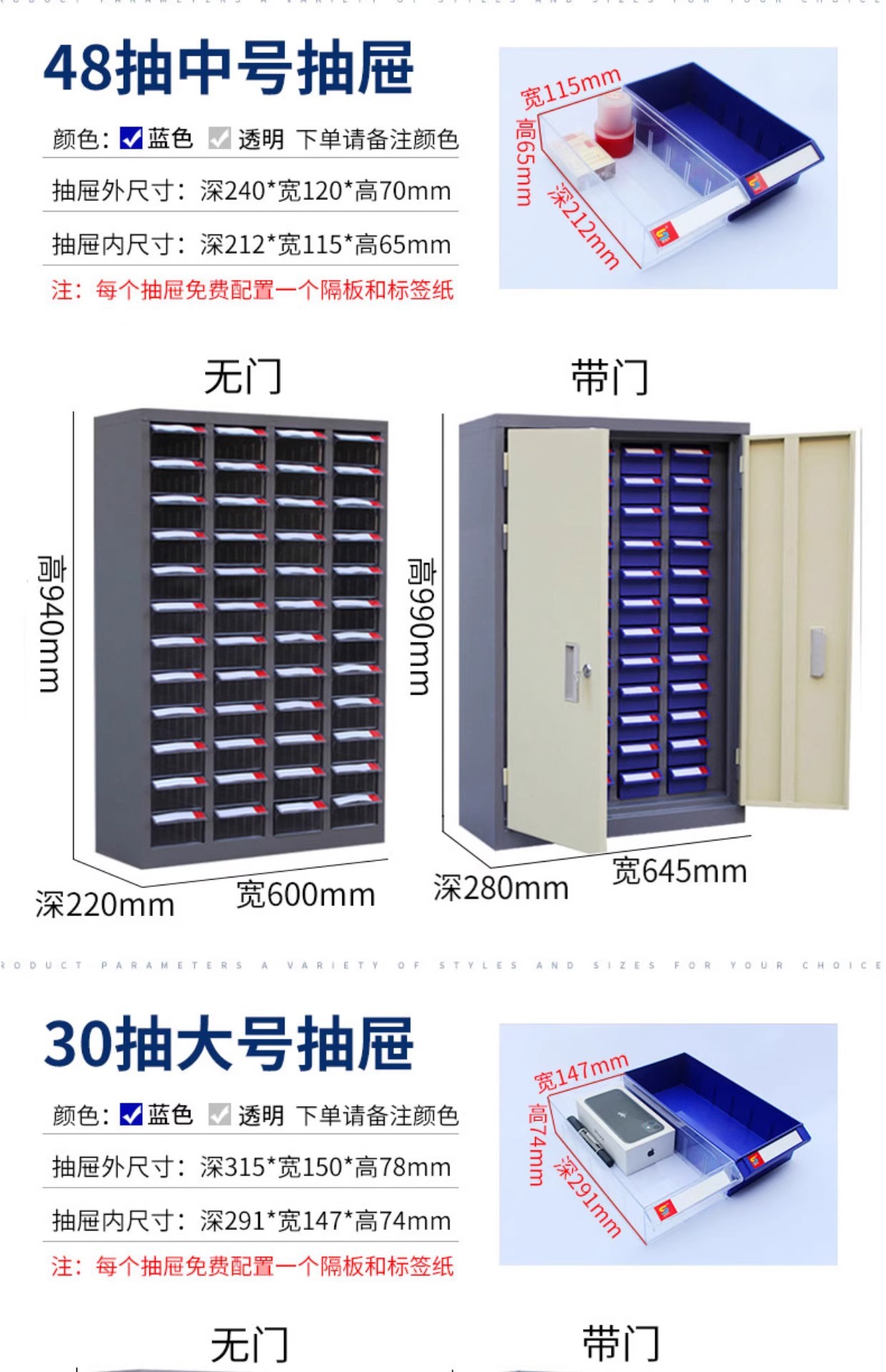 • 로얄 블루 48 서랍 부품 캐비닛(도어 포함)
