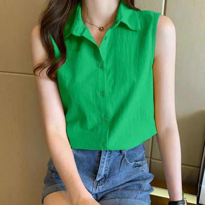 여성용 쉬폰 민소매 셔츠, 여름 스타일, 다재다능한 단색 셔츠, 루즈하고 세련된 바닥 조끼 탑 2025 새로운 스타일