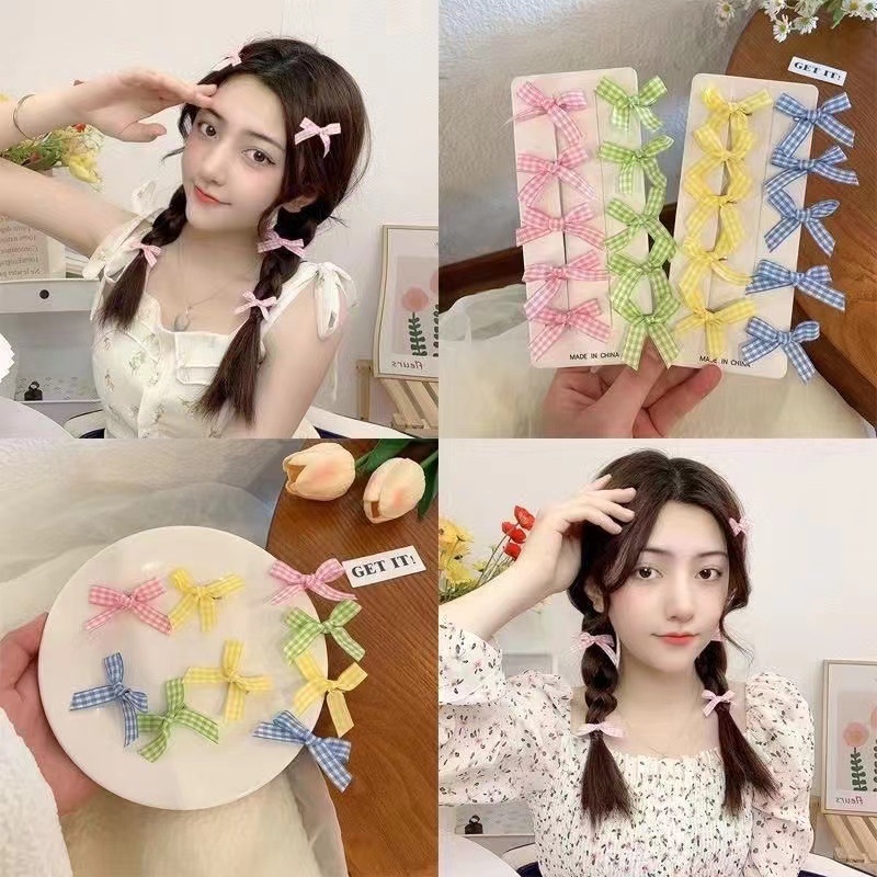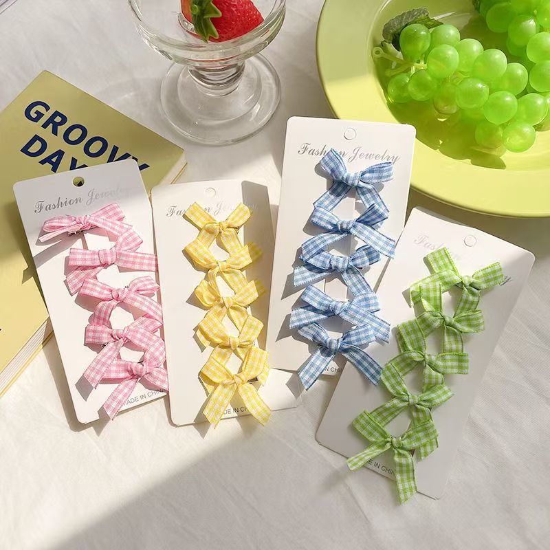 격자 무늬 소녀의 작은 투명한 리본 머리핀, 달콤한 더블 포니테일 덕빌 클립, 고급 기질의 사이드 머리핀스토어 가기