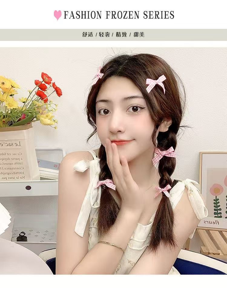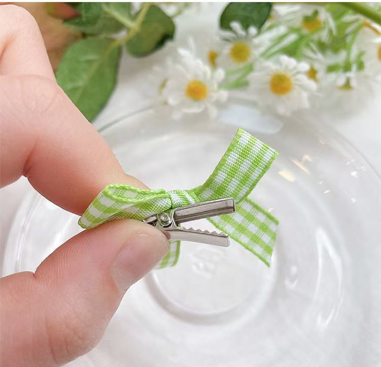 격자 무늬 소녀의 작은 투명한 리본 머리핀, 달콤한 더블 포니테일 덕빌 클립, 고급 기질의 사이드 머리핀