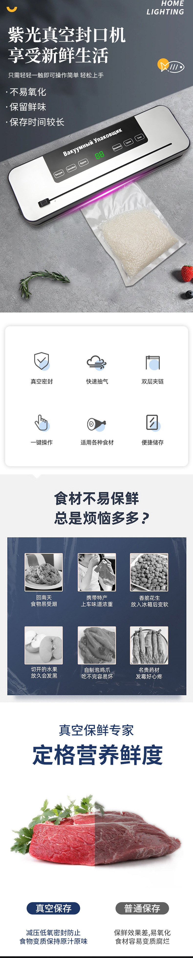 가정용 소형 진공 포장 밀봉기 자외선 살균 플라스틱 밀봉 진공 밀봉기 식품 보존 진공기스토어 가기