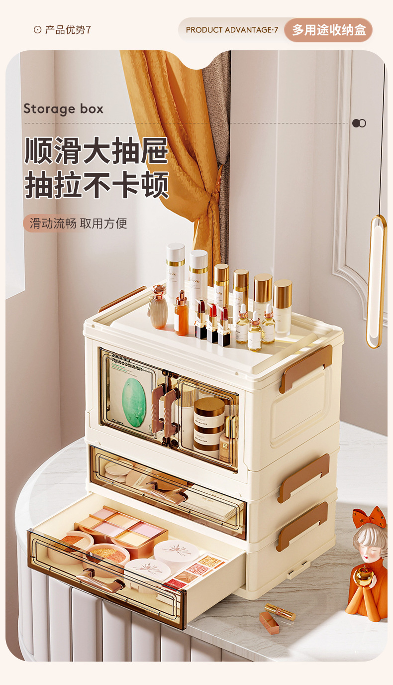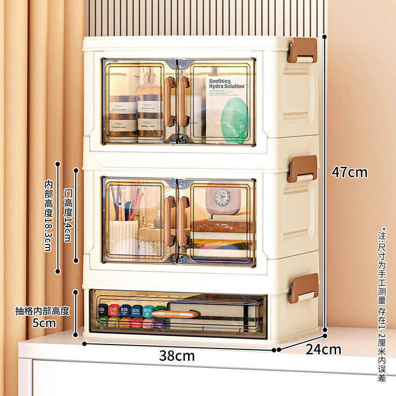 데스크탑 보관함 립스틱 이중 도어 플러스 서랍 보관함 다층 사무실 침실 책상 화장품 보관 캐비닛스토어 가기