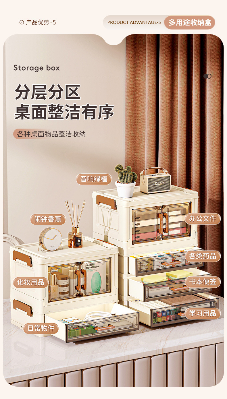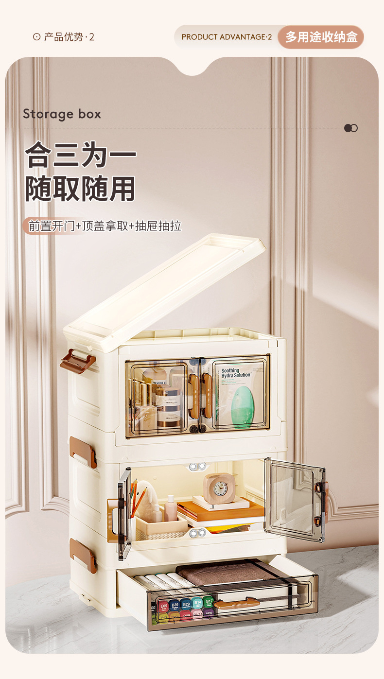 • 30면 광대역 탁상형 양문형 접이식 캐비닛(서랍 2개 + 도어 1개)