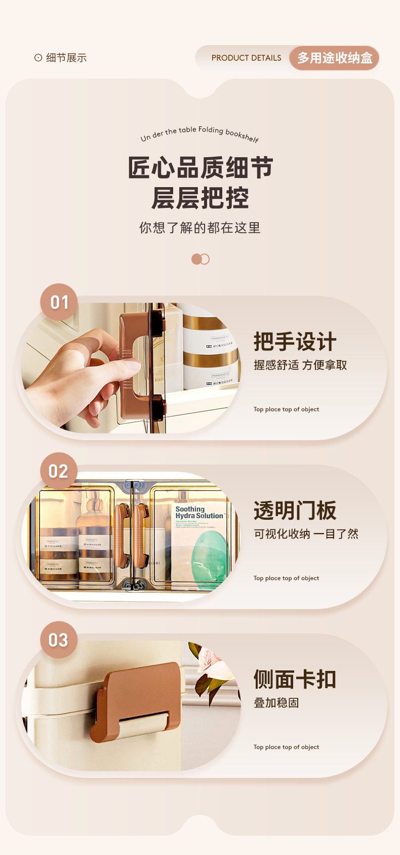 데스크탑 보관함 립스틱 이중 도어 플러스 서랍 보관함 다층 사무실 침실 책상 화장품 보관 캐비닛