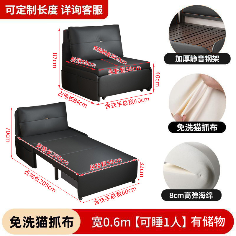 게으른 소파 침대 가정용 작은 거실 발코니 모바일 소파 다기능 개폐식 접이식 일체형 낮잠 침대스토어 가기