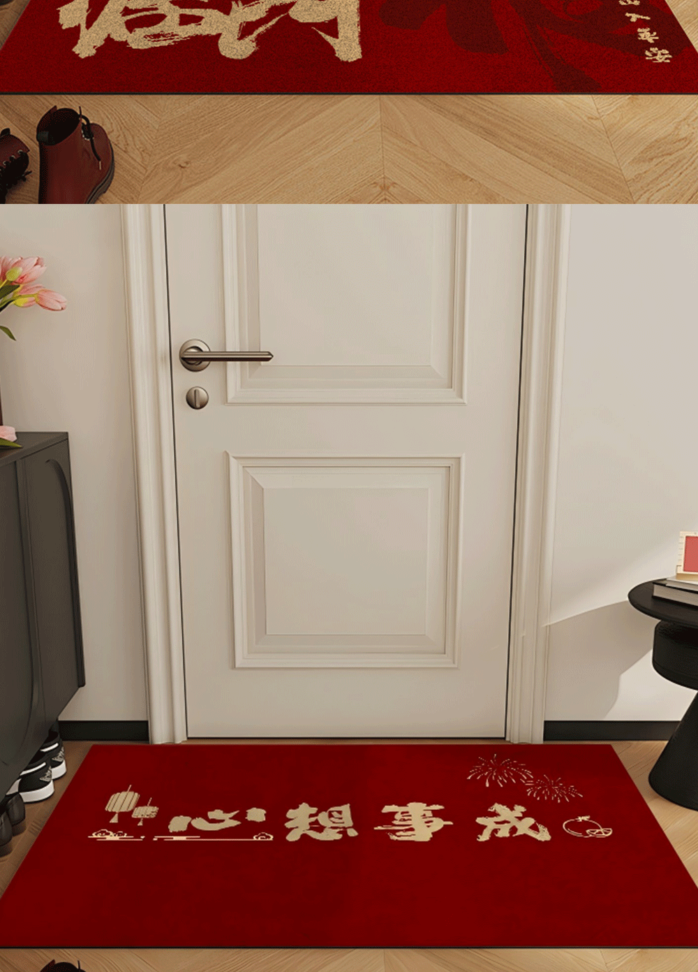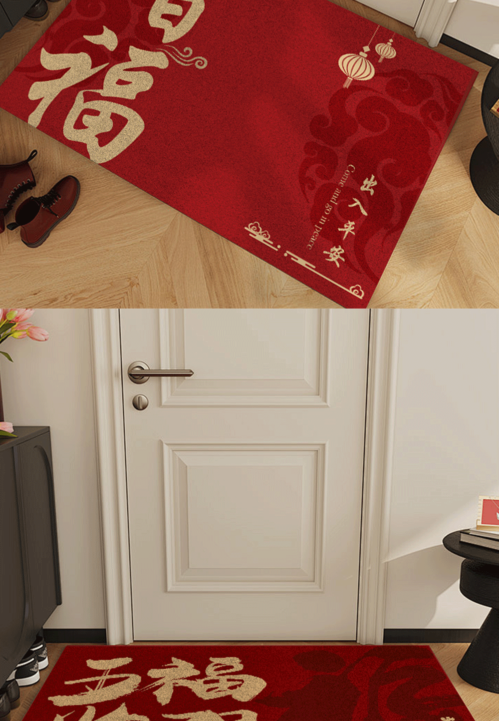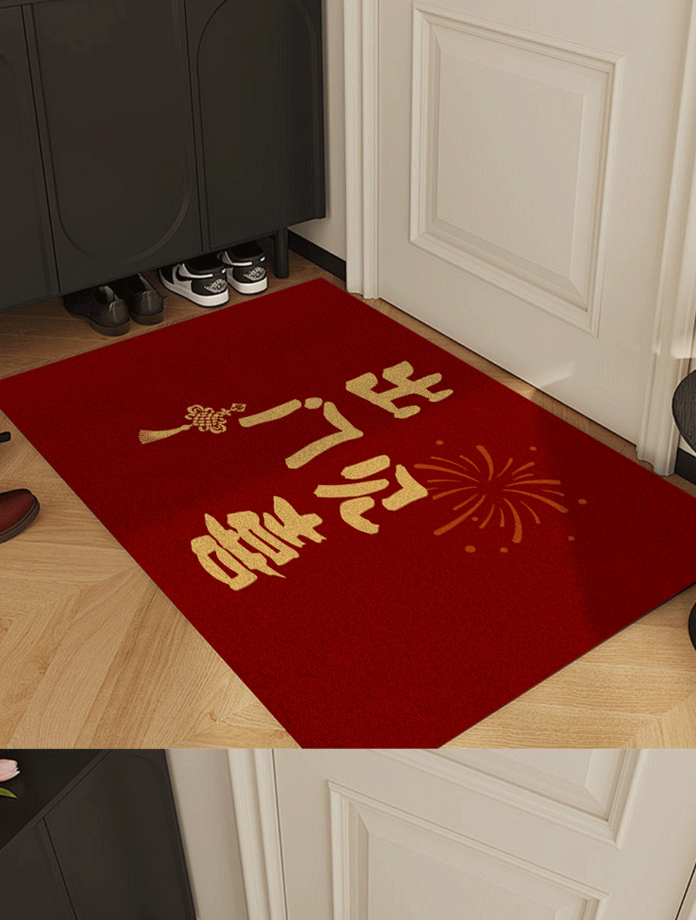 빨간색 와이어 링 도어 매트, 축제 집들이 카펫, 내마모성 미끄럼 방지 현관 매트, 출입문 얼룩 방지 도어 매트스토어 가기