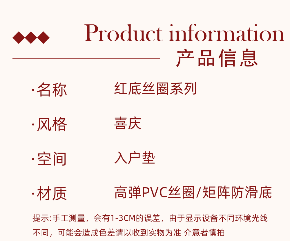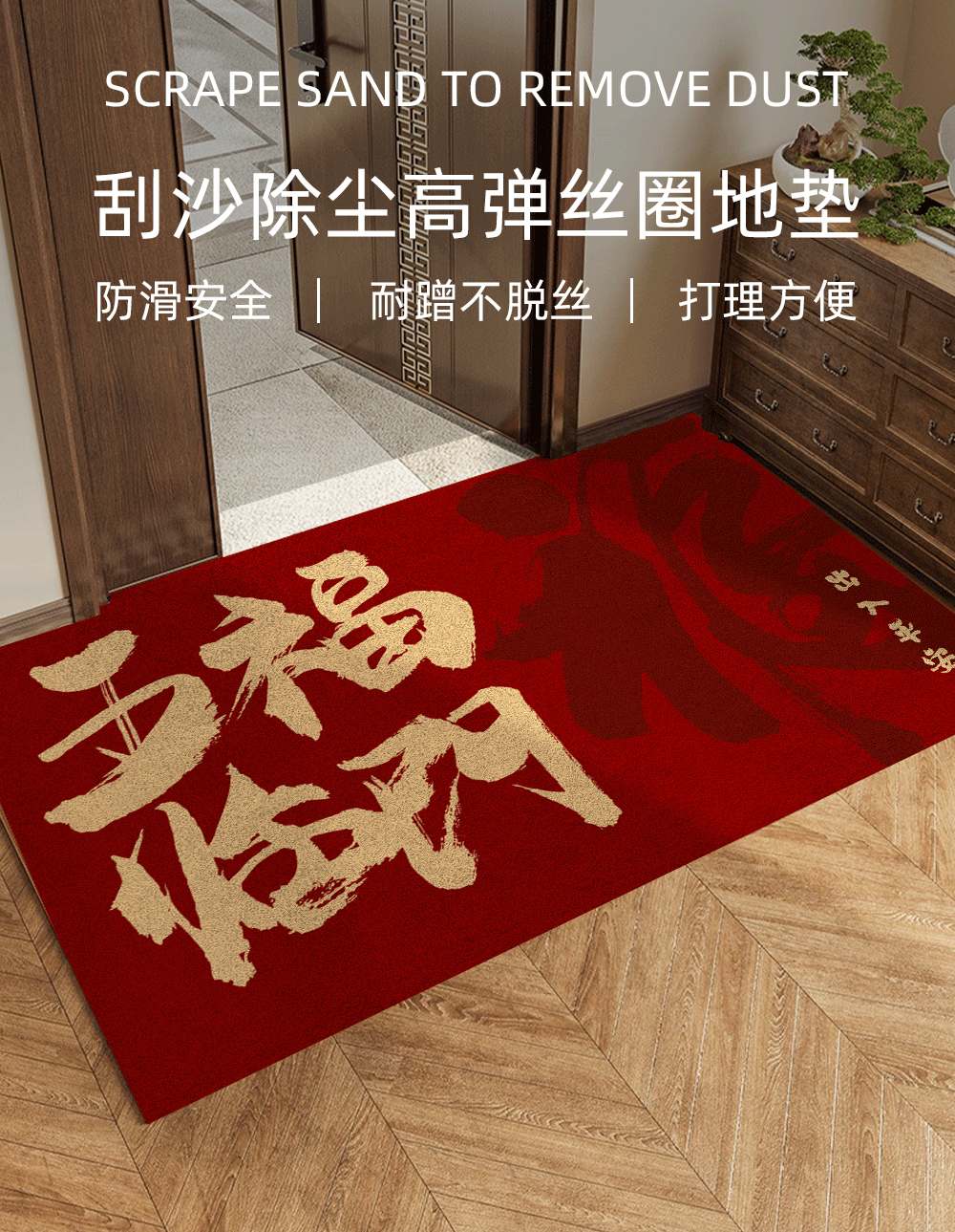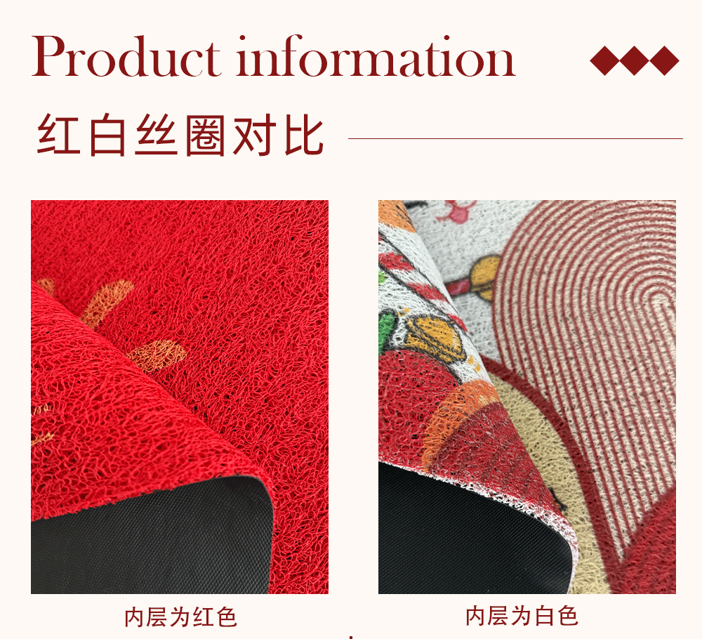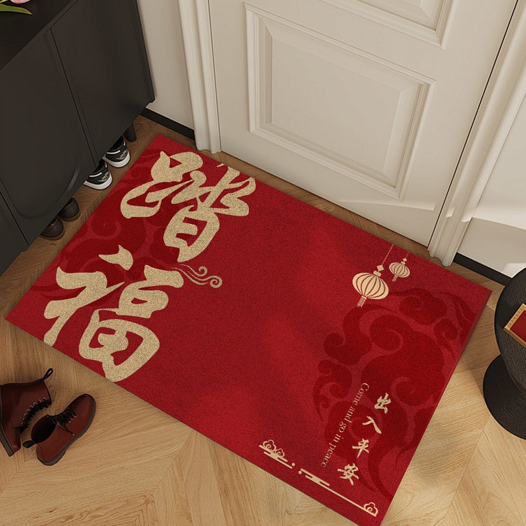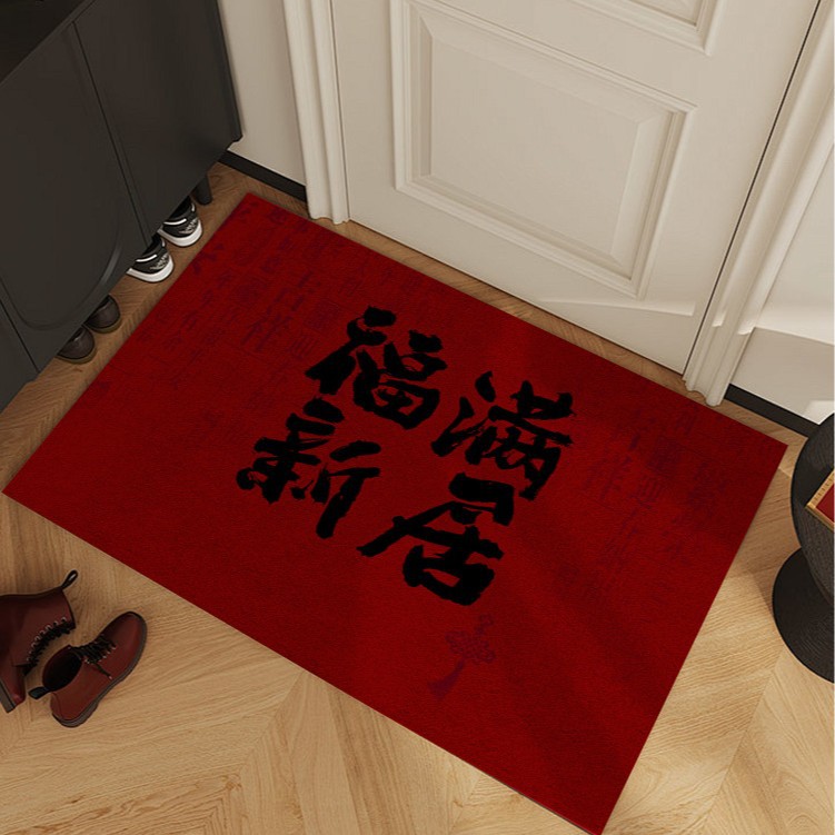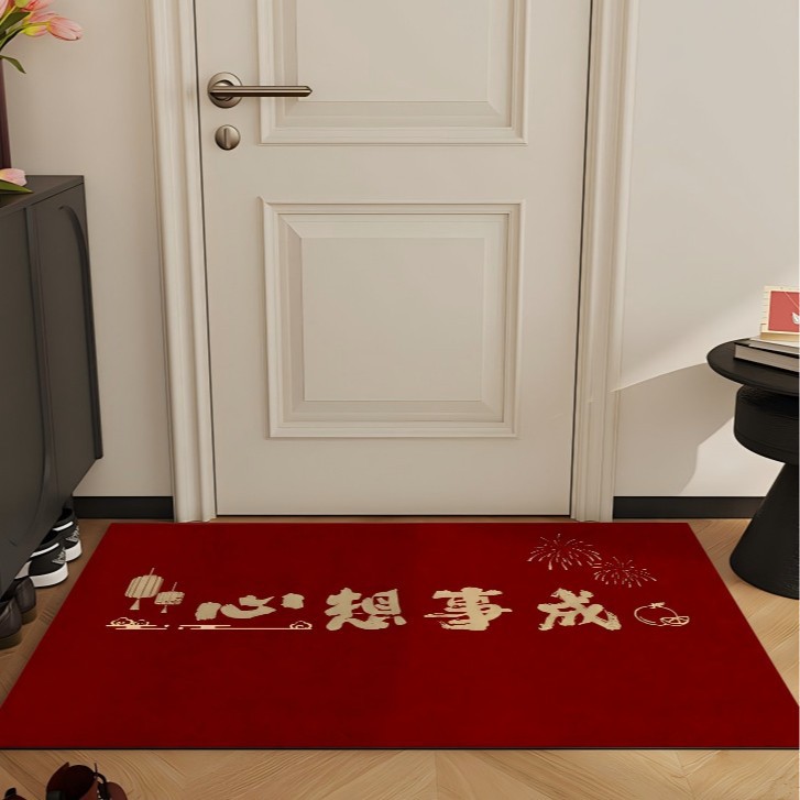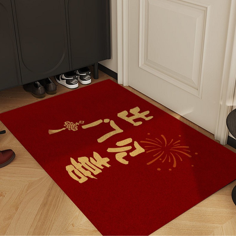 빨간색 와이어 링 도어 매트, 축제 집들이 카펫, 내마모성 미끄럼 방지 현관 매트, 출입문 얼룩 방지 도어 매트