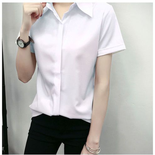 • 흰색 반팔 [사각 칼라 숨김 단추]