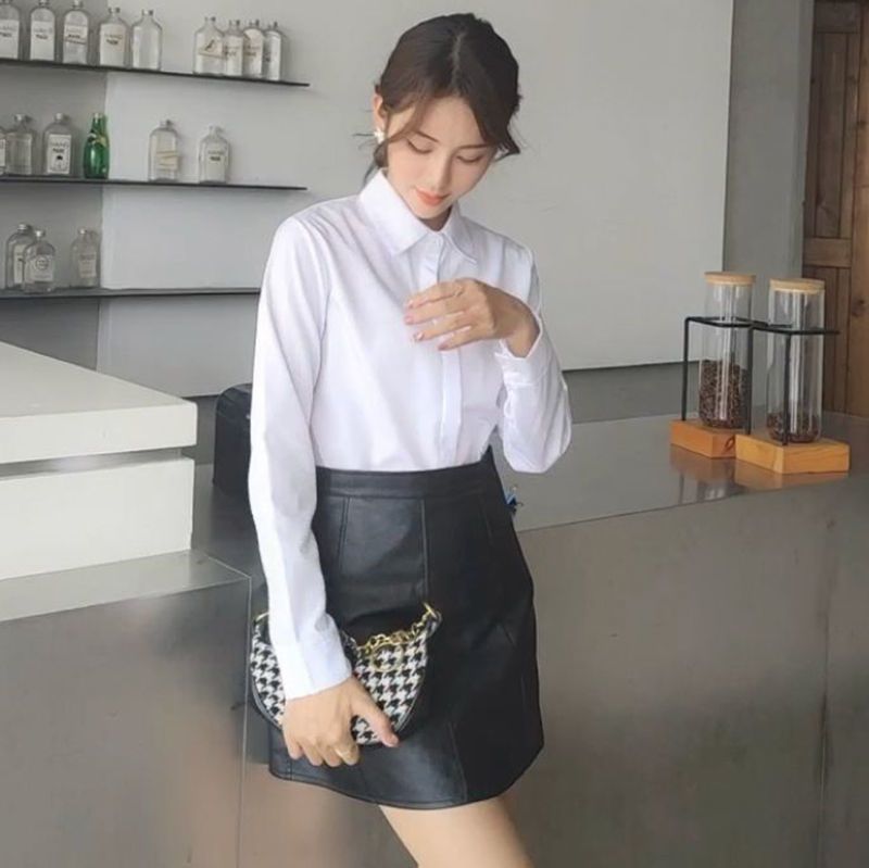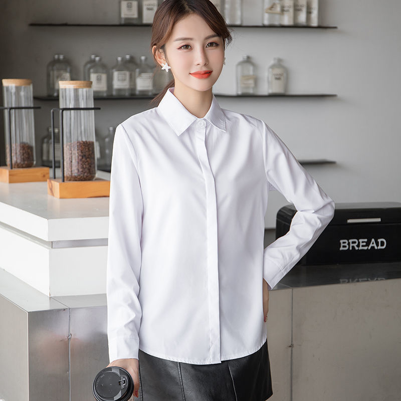 • 화이트 긴소매 [스퀘어 칼라 히든버튼]