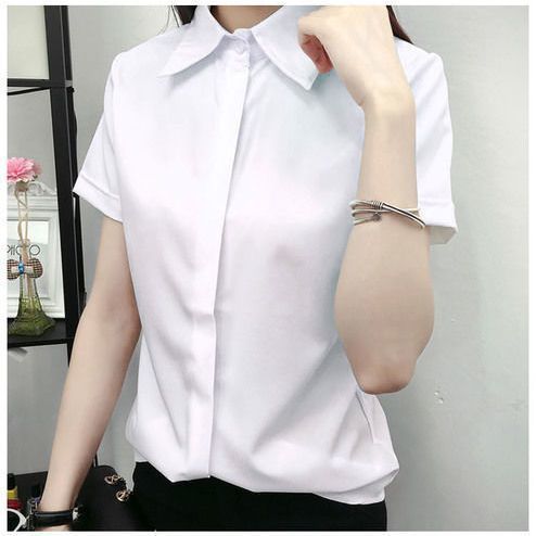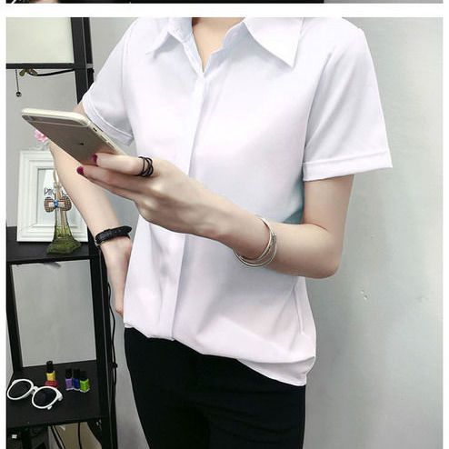 여름 신작 쉬폰 셔츠 여성용 반팔 얇은 전문 흰색 셔츠 여성용 긴팔 틈새 시크 아우터 셔츠