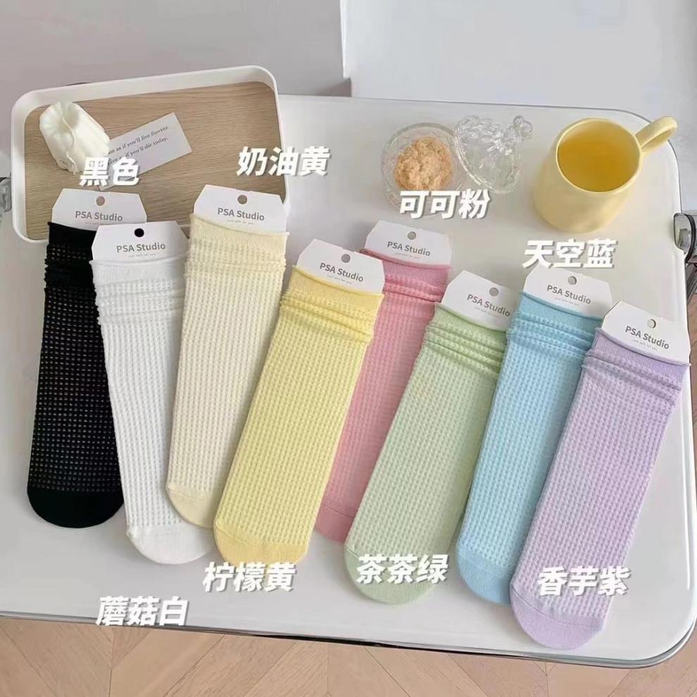 어린이 아이스 양말 솔리드 컬러 인 메쉬 통기성 스타킹 중간 튜브 여름 스태킹 스타킹 여름 얇은 롱 스타킹