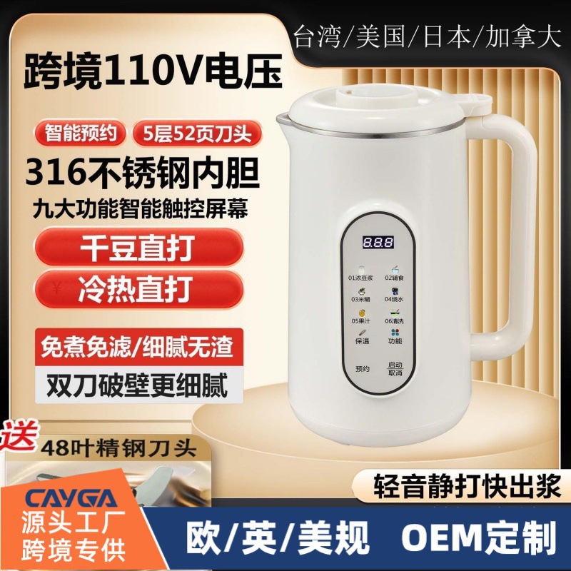 Amazon은 110V 미국 표준 316 라이너 벽 파괴 두유 기계, 대만, 미국 및 일본 국경 간 견과류 우유 기계를 독점적으로 공급합니다.