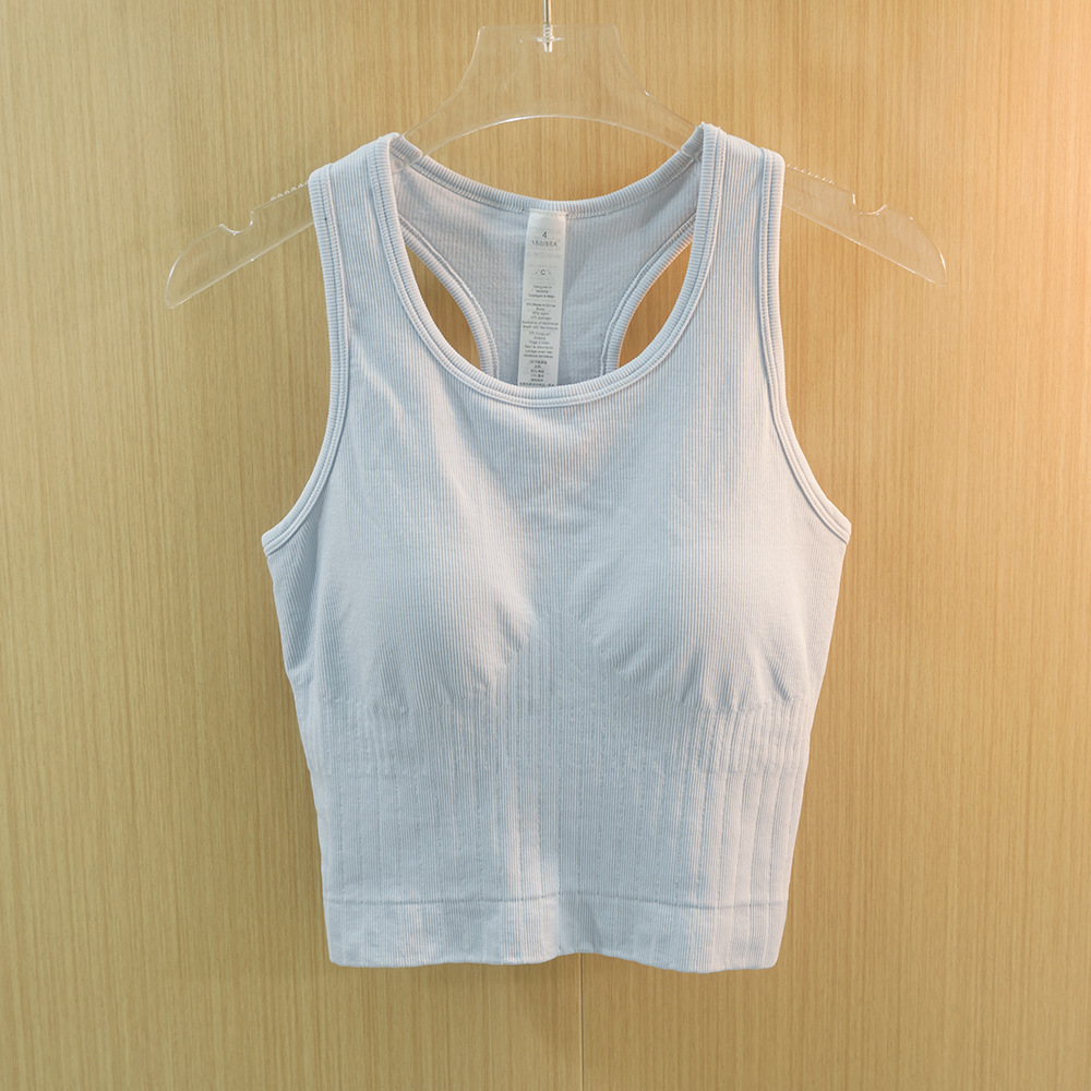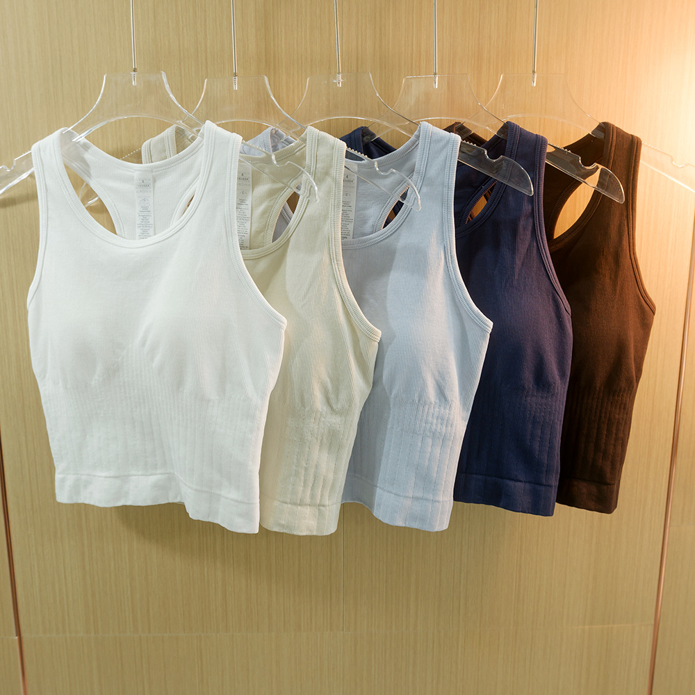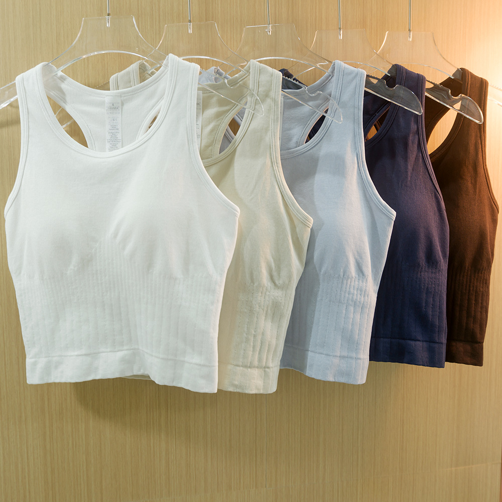 여름 요가 이음매없는 니트 I 자형 조끼 더블 립 허리 통기성 스포츠 피트니스 브래지어 고정 유방 컵