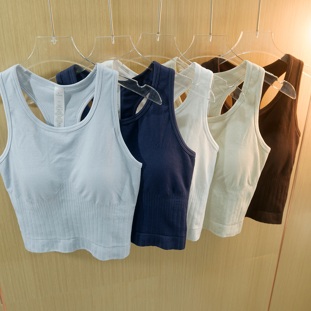 여름 요가 이음매없는 니트 I 자형 조끼 더블 립 허리 통기성 스포츠 피트니스 브래지어 고정 유방 컵스토어 가기